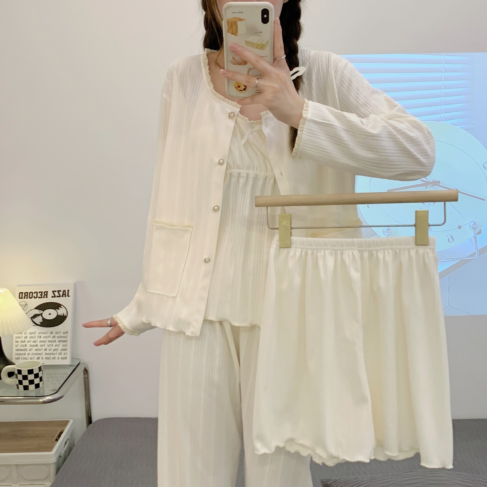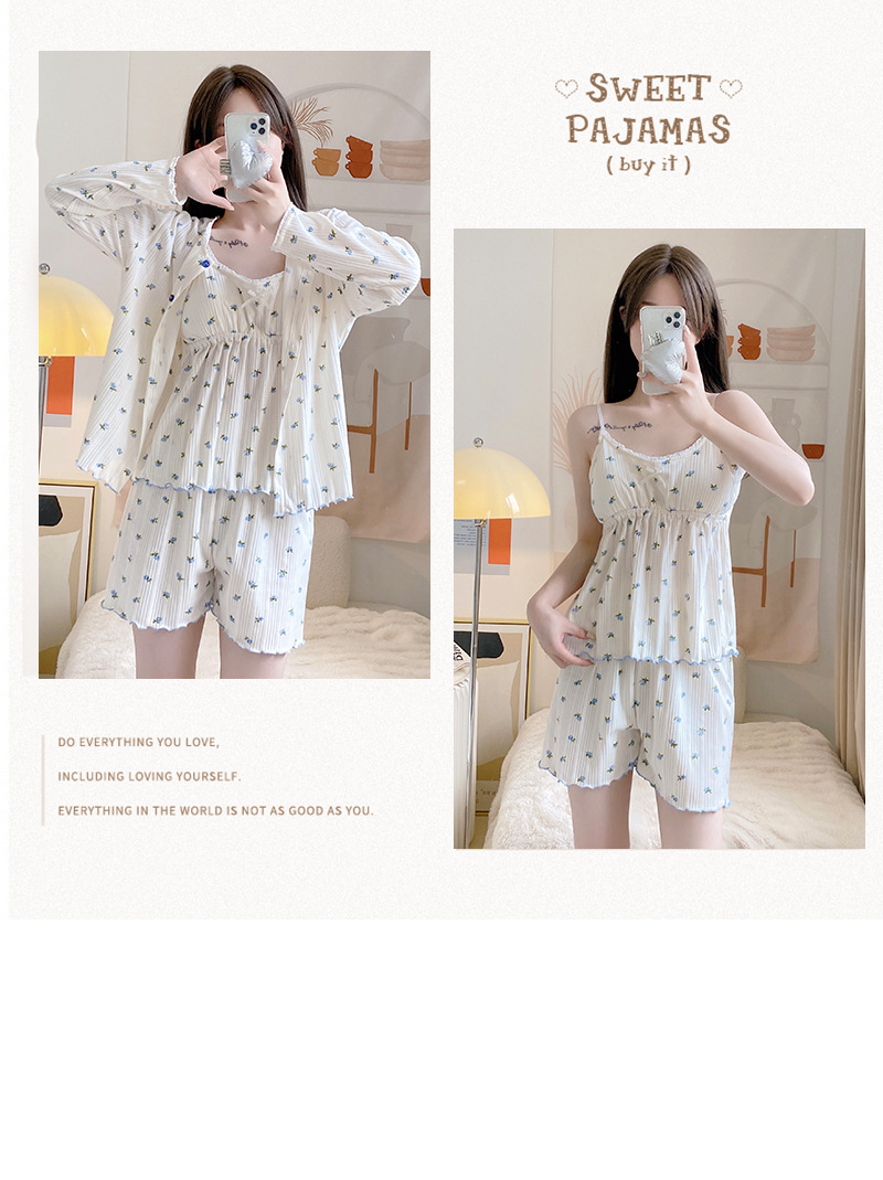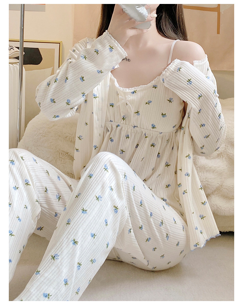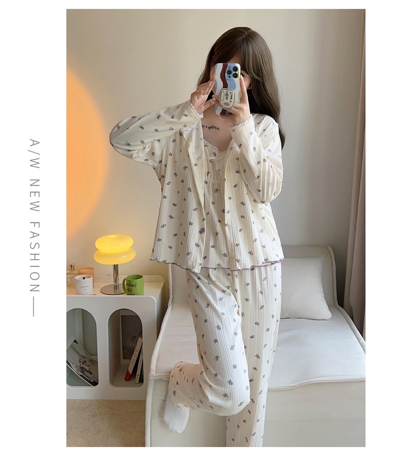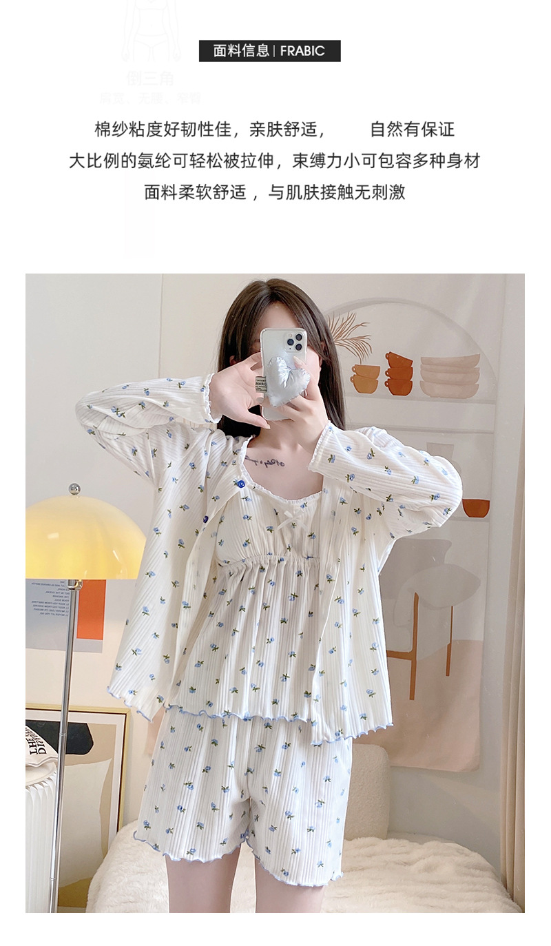 잠옷 여자의 봄과 가을 가슴 패드 달콤한 귀여운 소녀의 4 피스 세트 여름 느슨한 긴팔 가정 옷 겨울스토어 가기