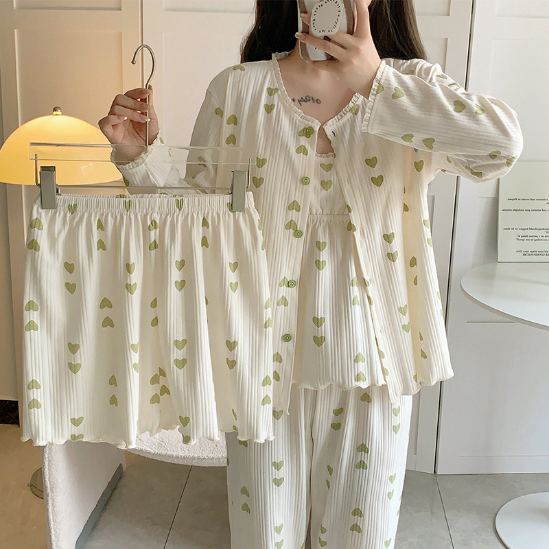 잠옷 여자의 봄과 가을 가슴 패드 달콤한 귀여운 소녀의 4 피스 세트 여름 느슨한 긴팔 가정 옷 겨울