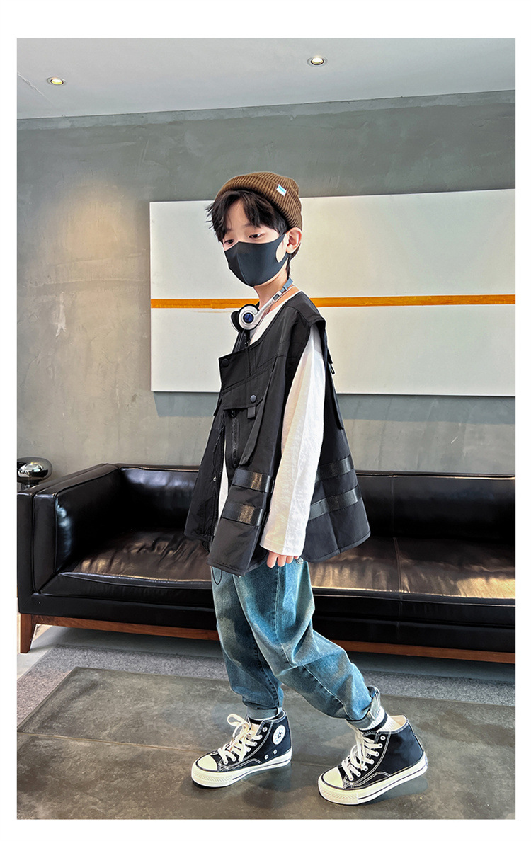 남자들의 블랙 크록 조끼 탑 2024 봄 새 코트 대형 어린이 잘 생긴 큰 포켓 웨이스트 코트