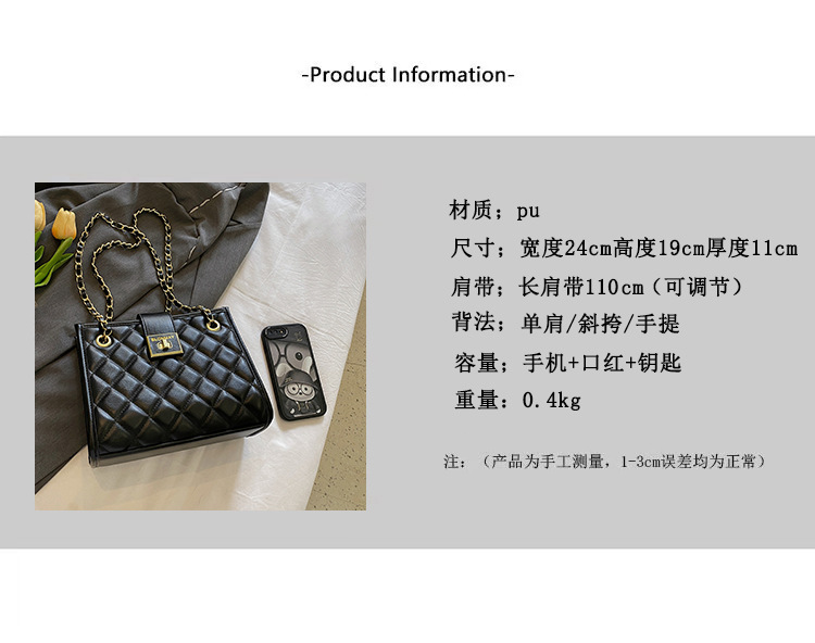 질감 마름모꼴 체인 백 여성용 2023 신상품 한국 스타일 유행 캐주얼 크로스바디 대용량 체인 백 숄더백