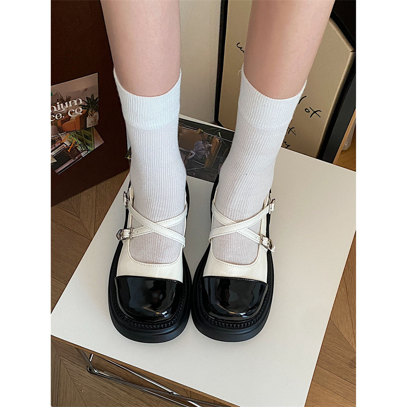 작은 가죽 신발 Mary Jane 여성용 2023 여름 새로운 학업 스타일 한국 라운드 헤드 스커트 패션 모든 매치 싱글 레이어 신발스토어 가기