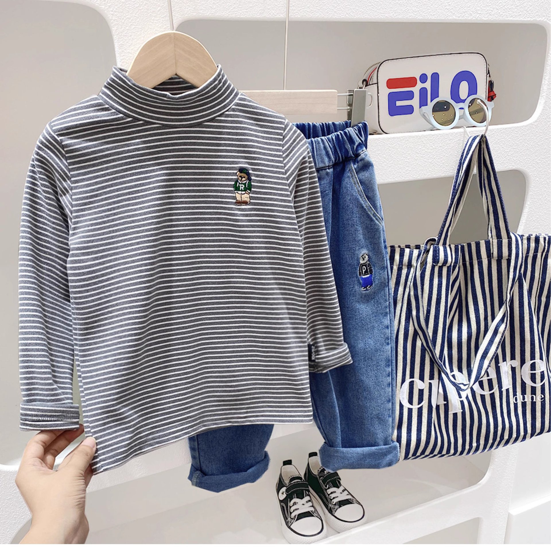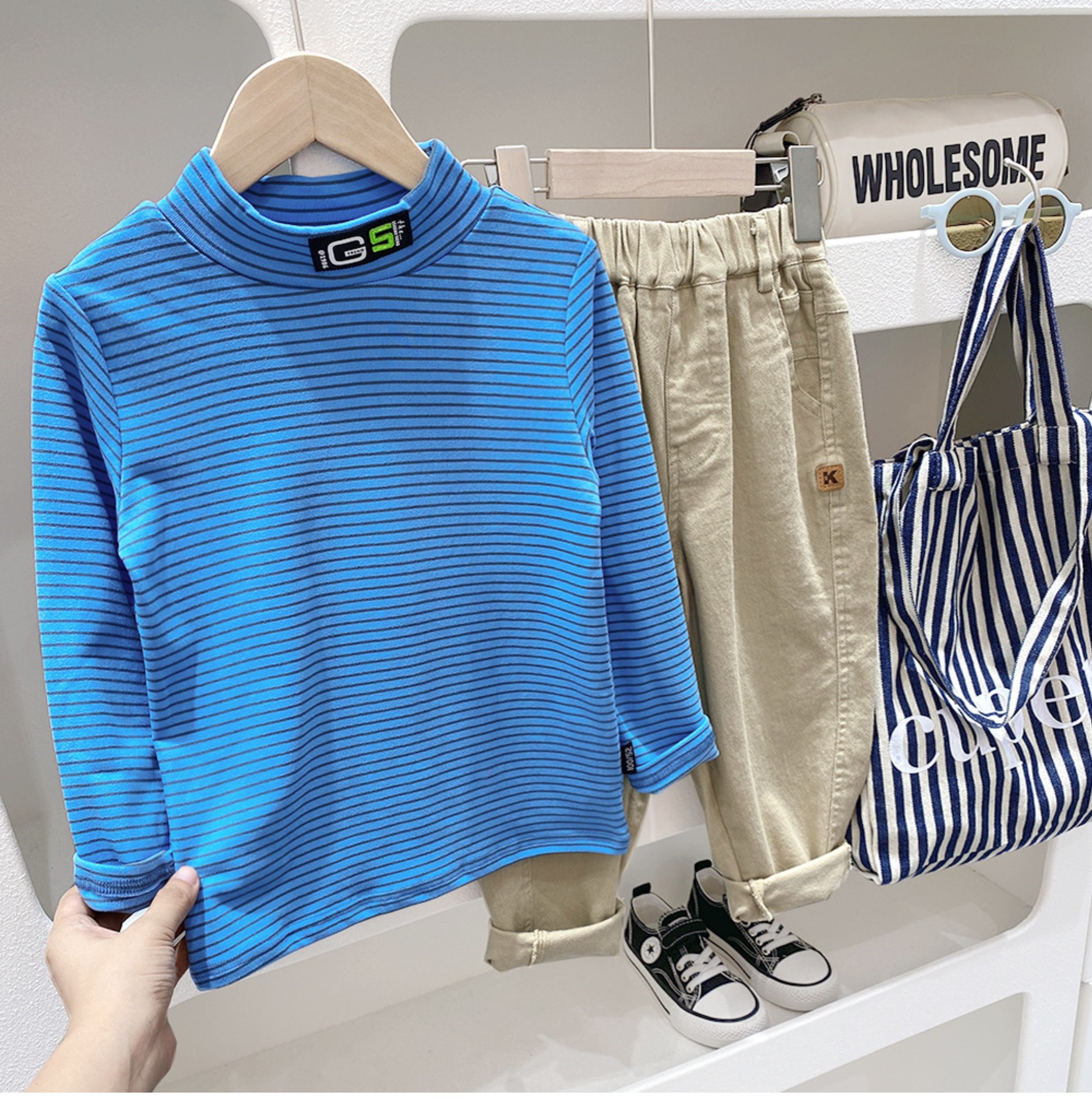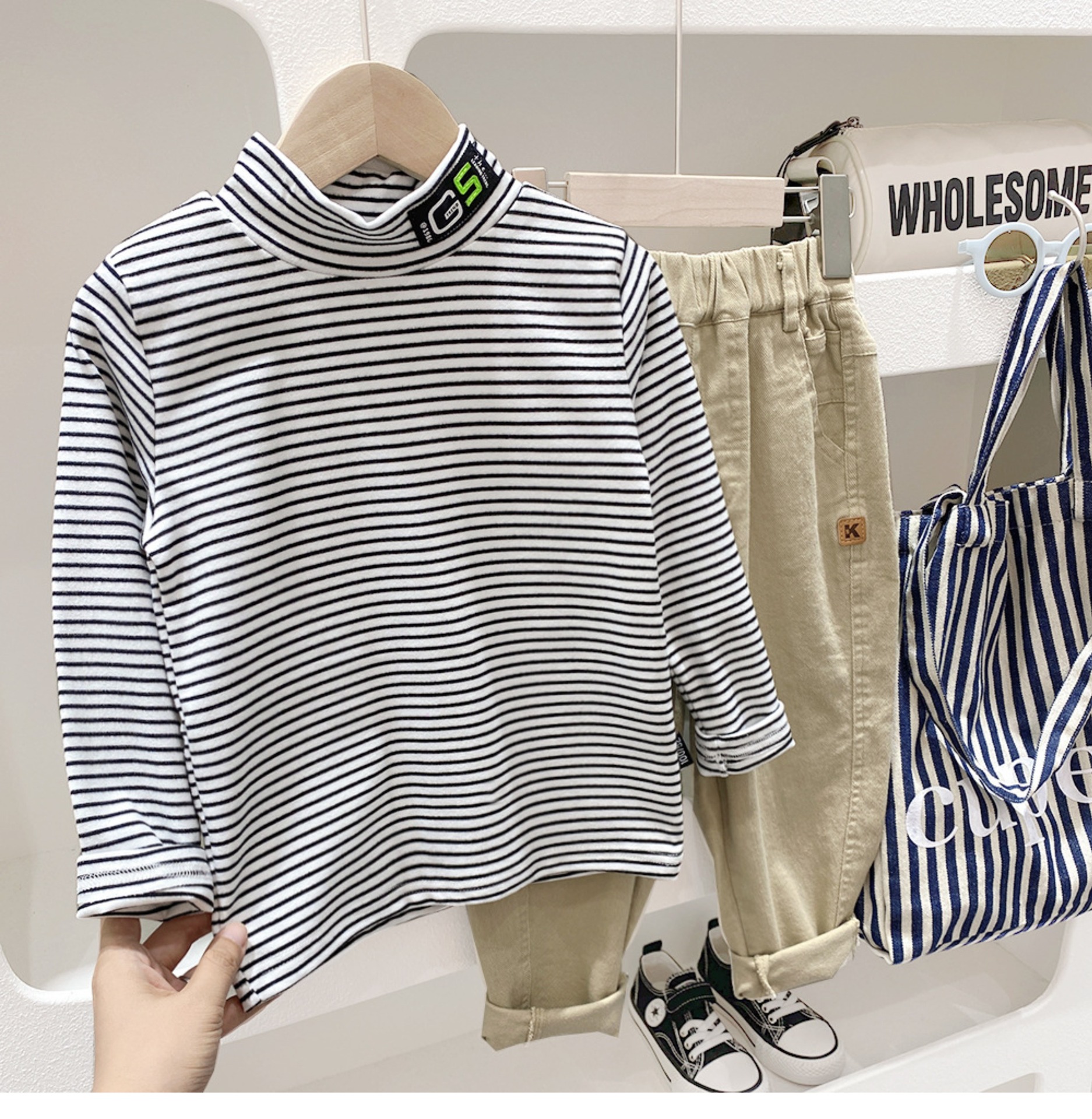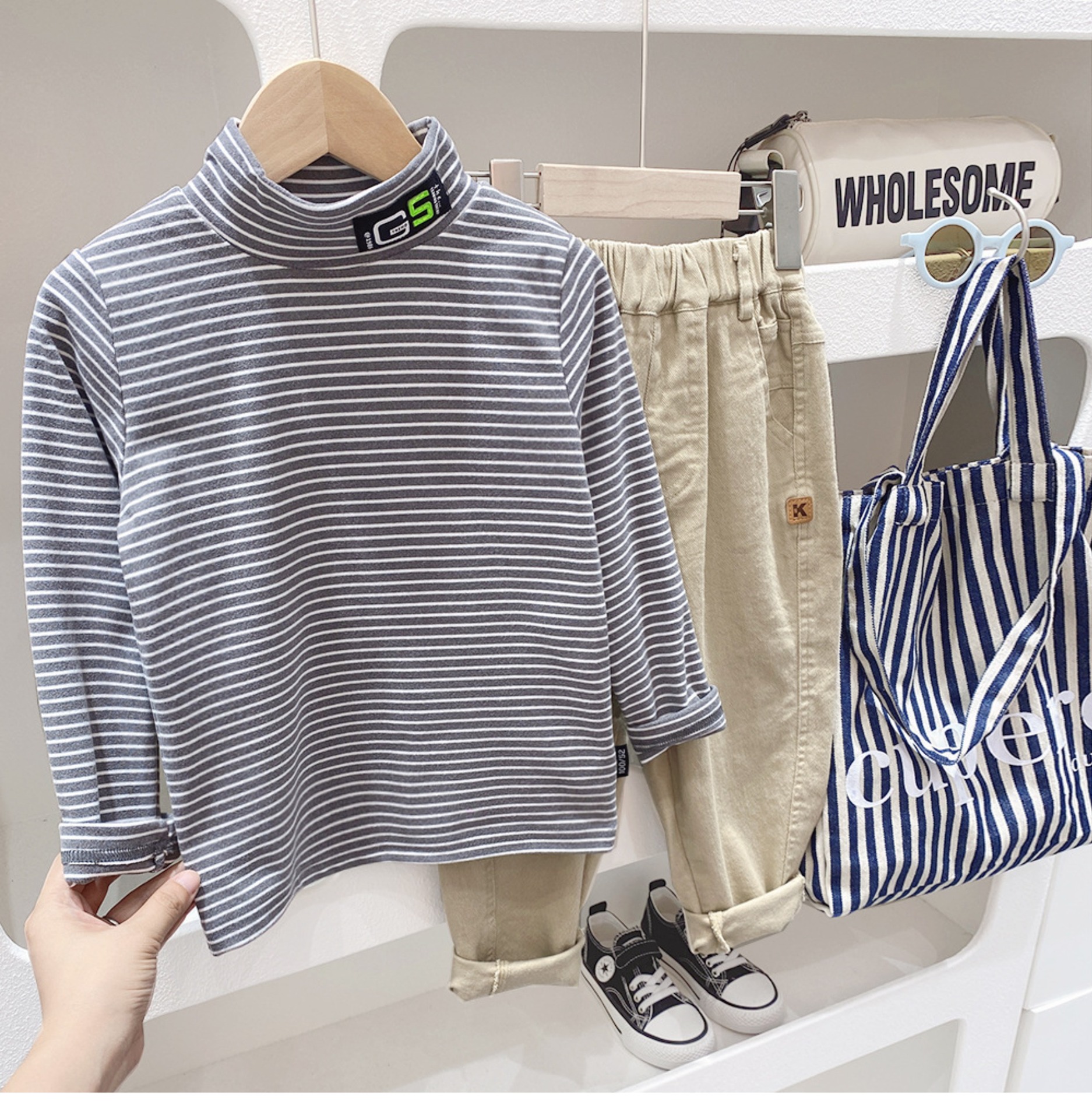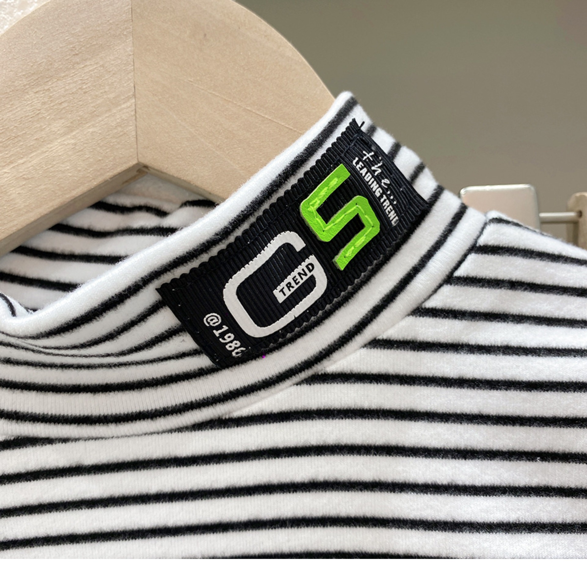 2023 가을과 겨울 새로운 어린이 벨벳베이스 셔츠 아기 소년 소녀 스트라이프 칼라 따뜻한 탑 외국 스타일 티셔츠스토어 가기