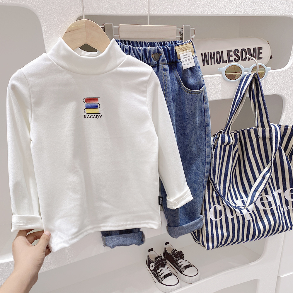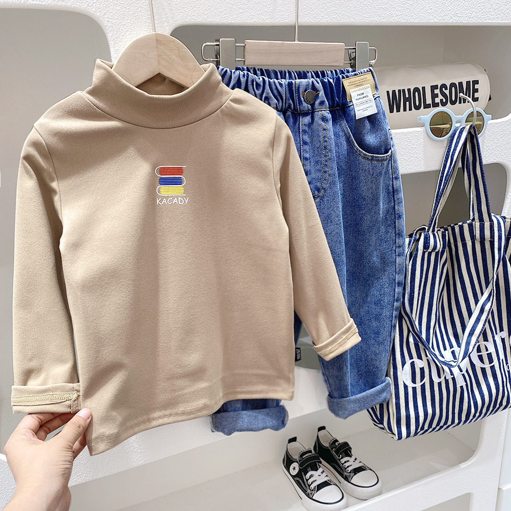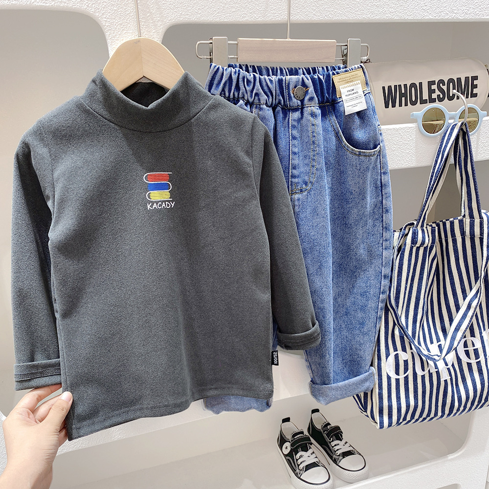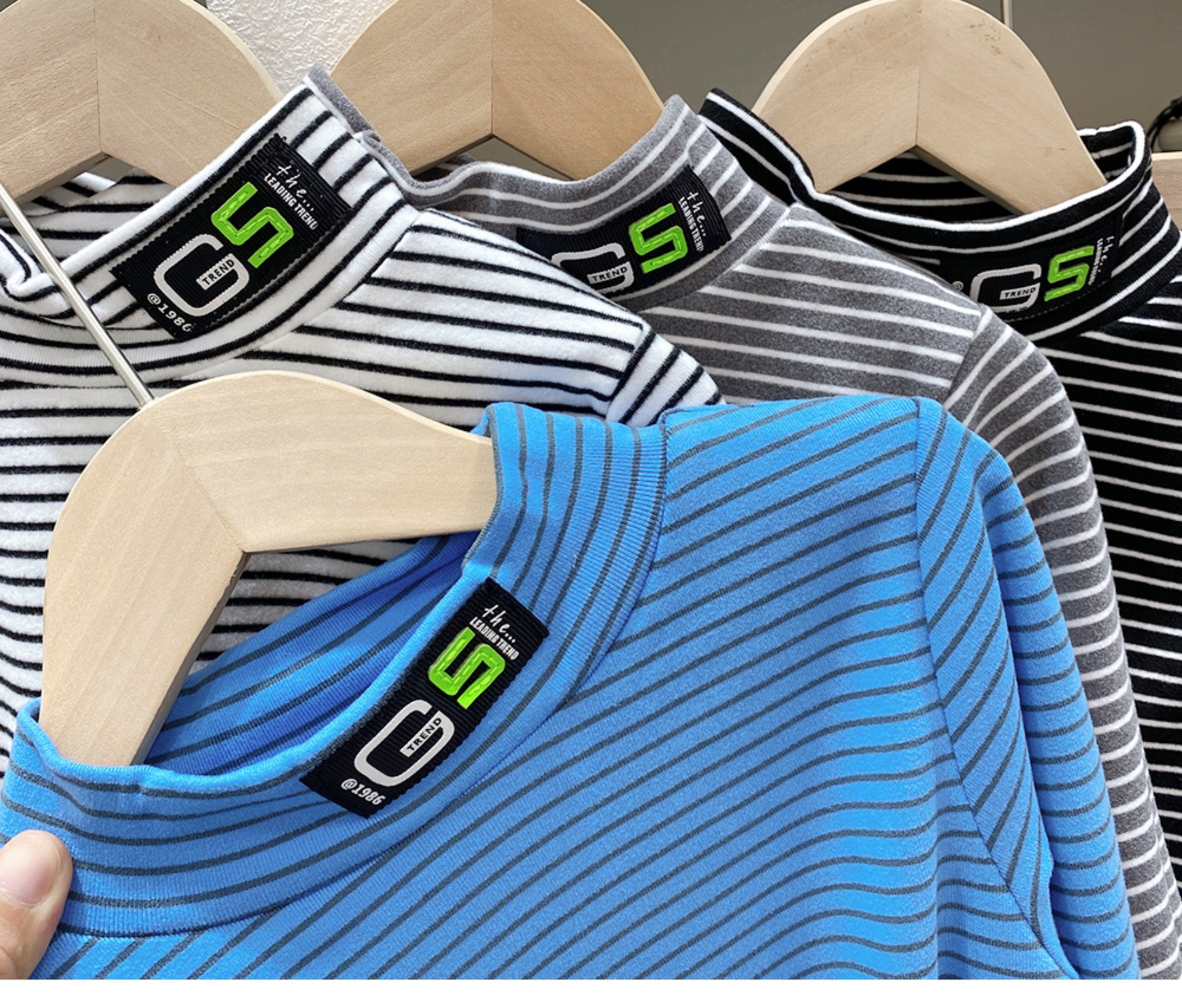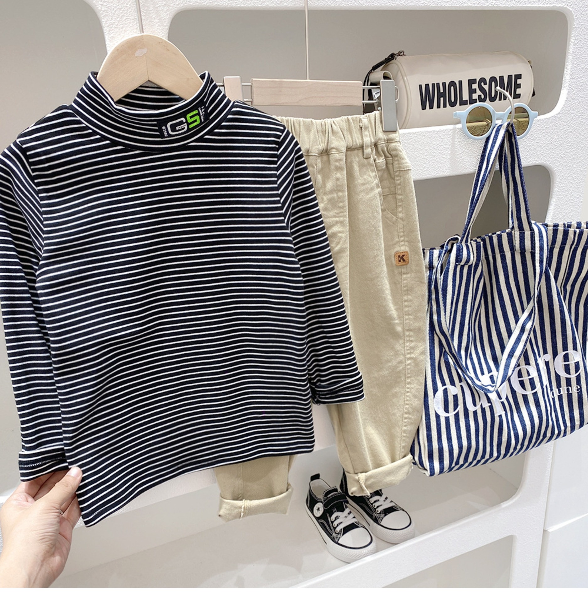 2023 가을과 겨울 새로운 어린이 벨벳베이스 셔츠 아기 소년 소녀 스트라이프 칼라 따뜻한 탑 외국 스타일 티셔츠스토어 가기