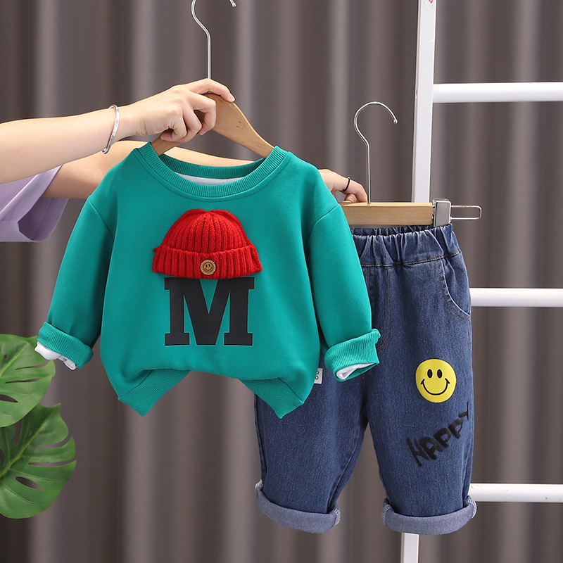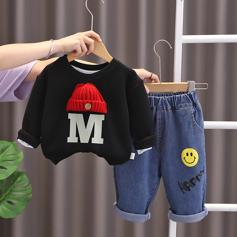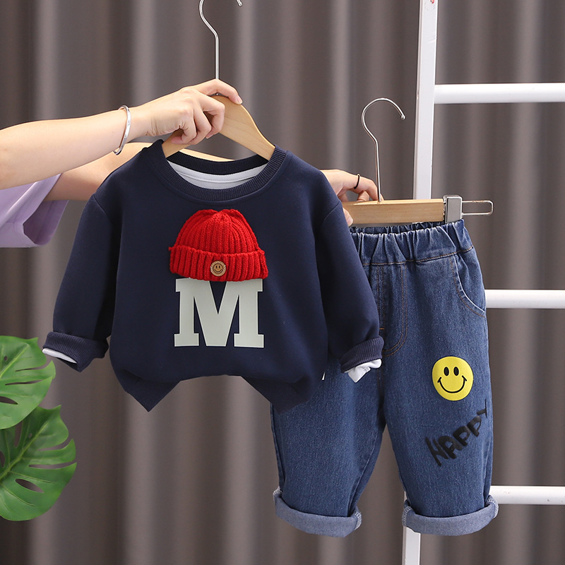 소년 가을 세트 새로운 패션 서양식 긴 소매 스웨터 청바지 투피스 아기 아동 의류 도매스토어 가기