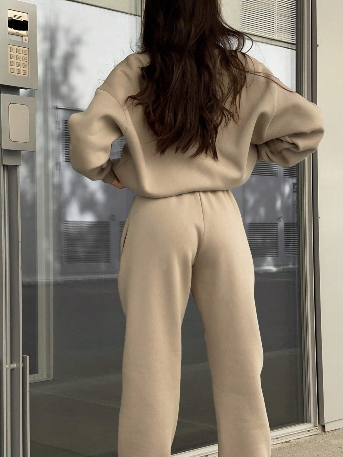 2023 유럽과 미국 여성의 새로운 아마존 올 매치 캐주얼 패션 두꺼운 긴 소매 땀 바지 투피스 세트