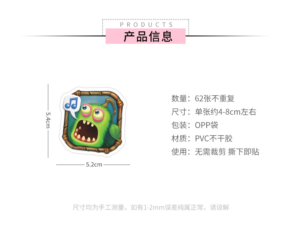 产品采用防水材质,进口海德堡高清印刷、覆膜,贴纸按形状模切完好,不用担心自己裁剪地歪歪扭扭