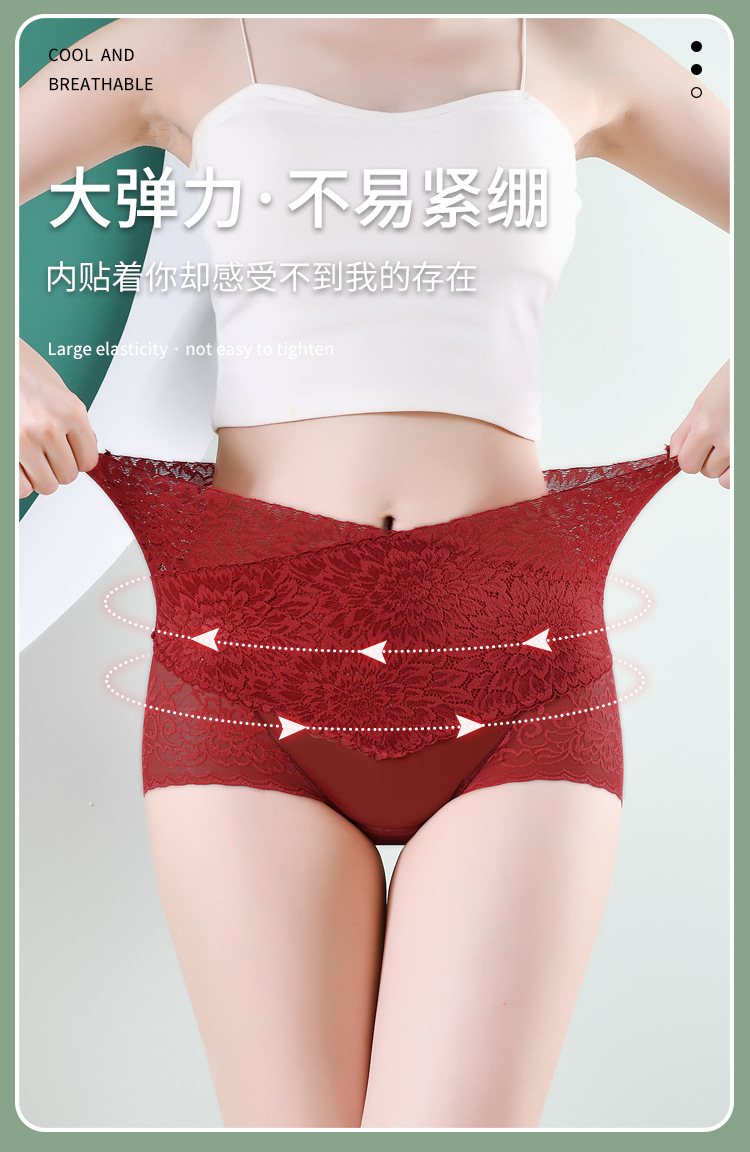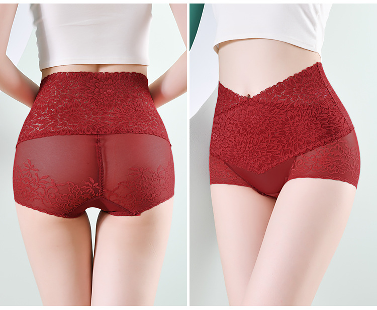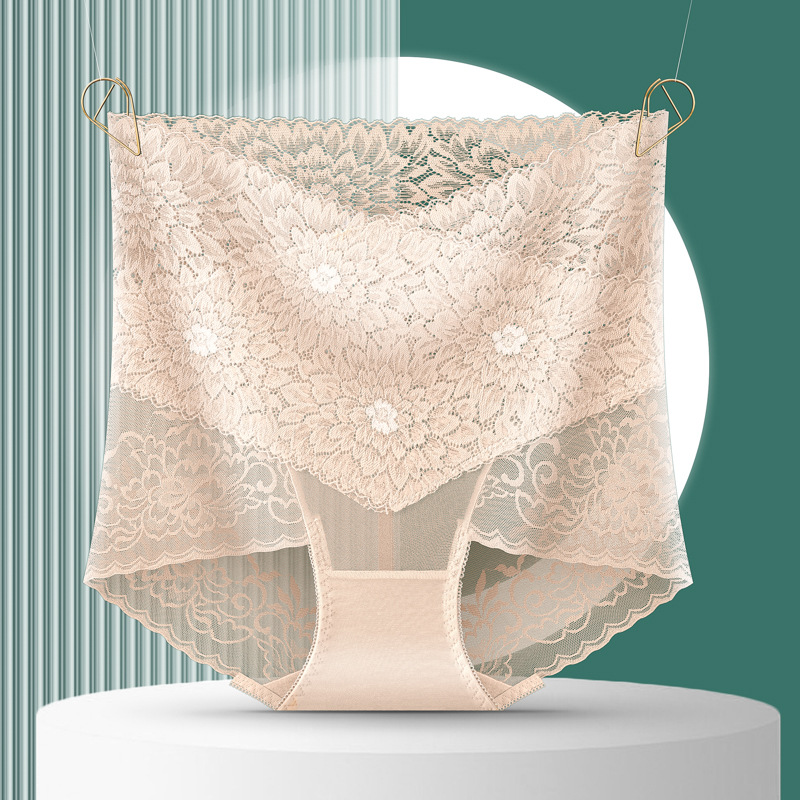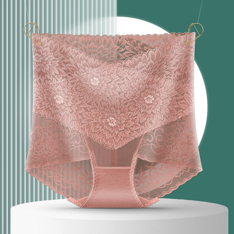 부드럽고 편안한 복부 팬티 여성용 레이스 메쉬 엉덩이 리프팅 비 클립 엉덩이 허리 경량 통기성 흔적없는 팬티