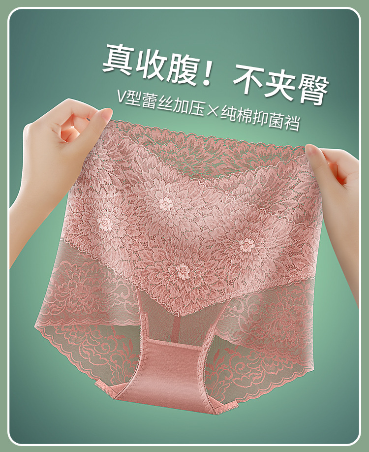부드럽고 편안한 복부 팬티 여성용 레이스 메쉬 엉덩이 리프팅 비 클립 엉덩이 허리 경량 통기성 흔적없는 팬티스토어 가기