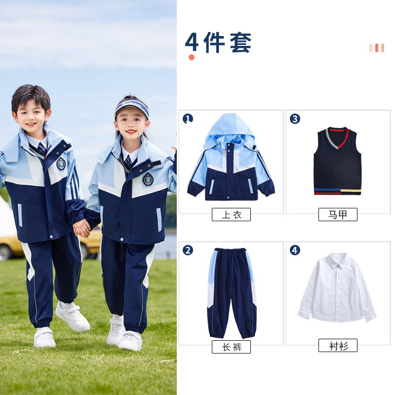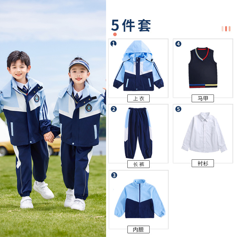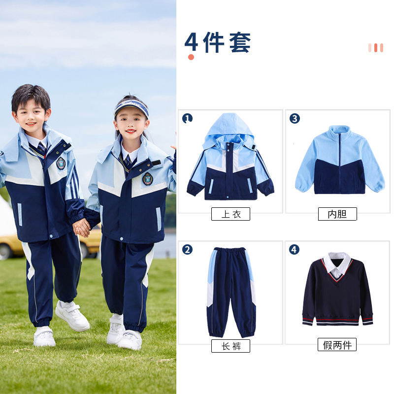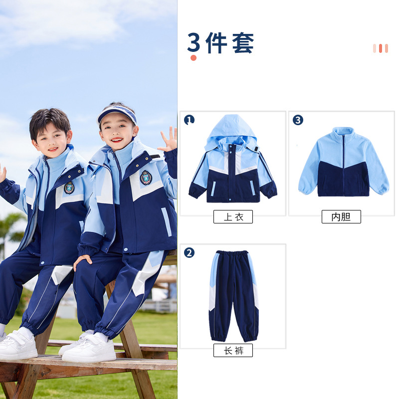 유치원 옷 봄과 가을 옷 초등학교 교복 쓰리피스 세트 소년 소녀 러쉬 옷 수업 옷 가을과 겨울 두꺼운 세트스토어 가기