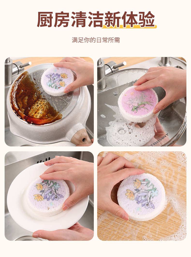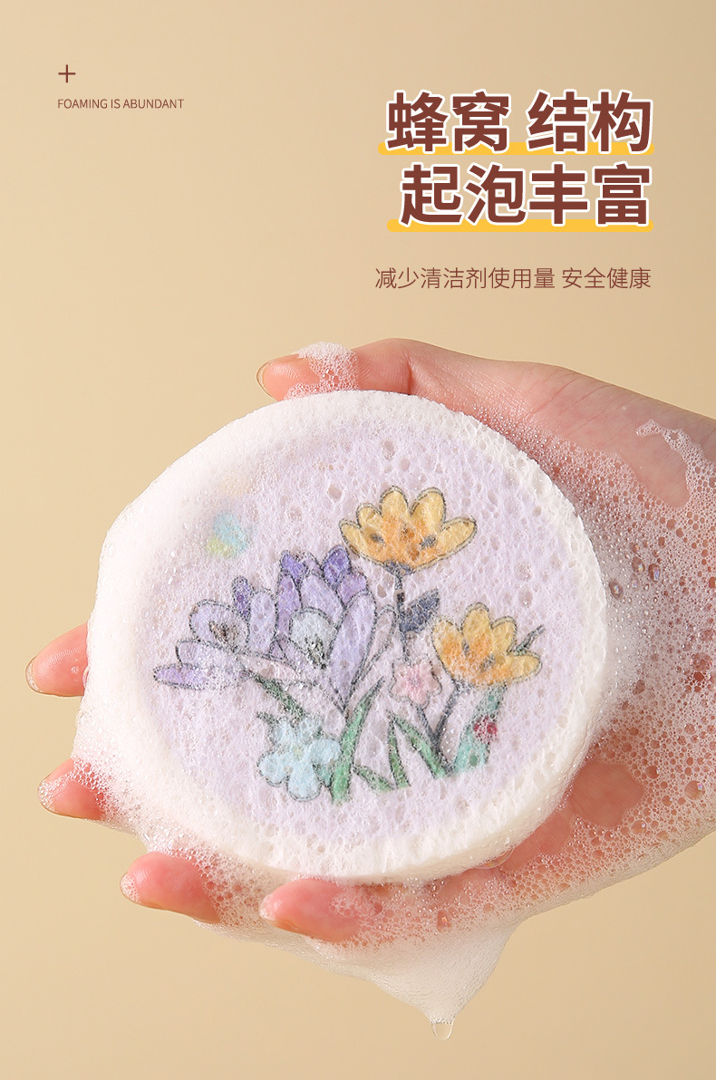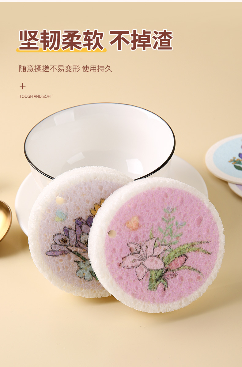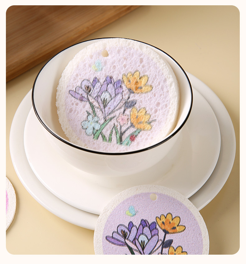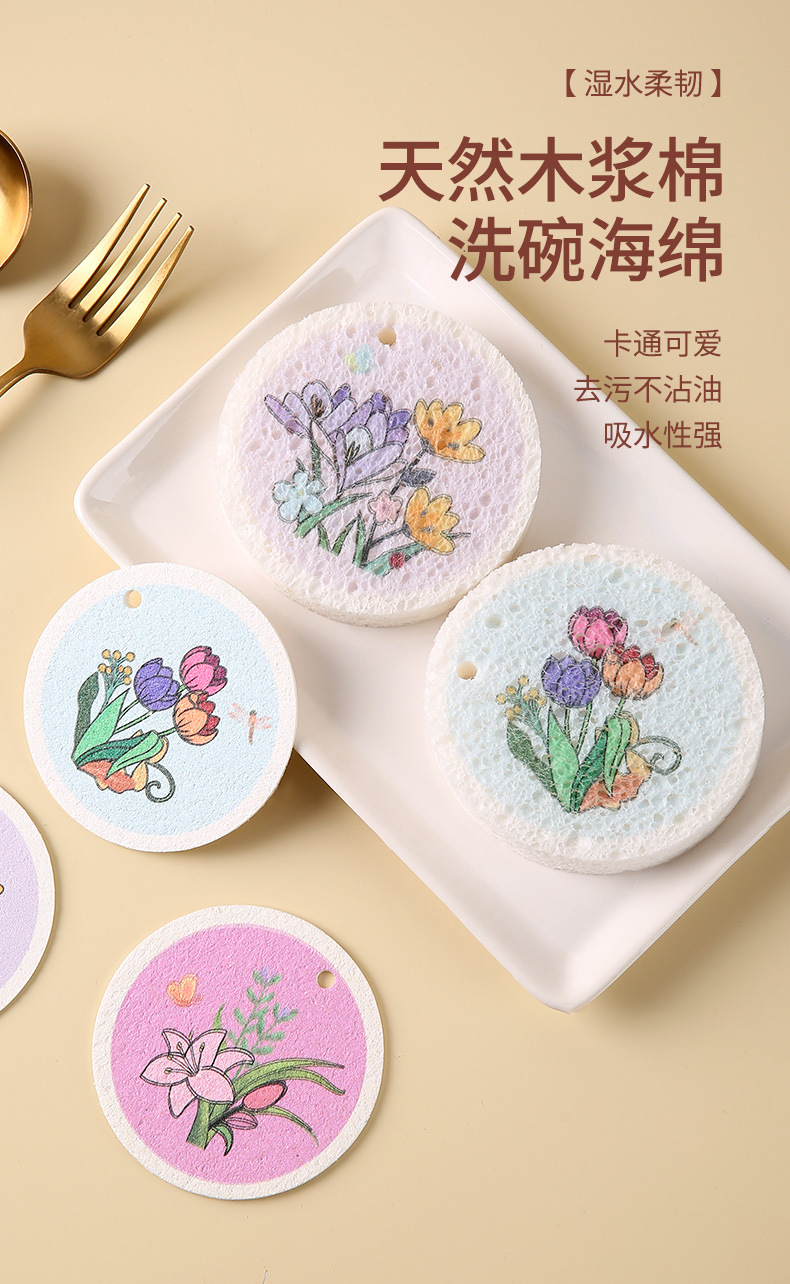 압축 나무 펄프 면 스폰지 닦아 둥근 꽃 나무 펄프 스폰지 식기 세척 브러시 냄비 그릇 주방 청소 식기 세척 수건 행주