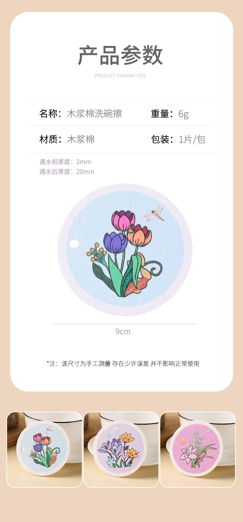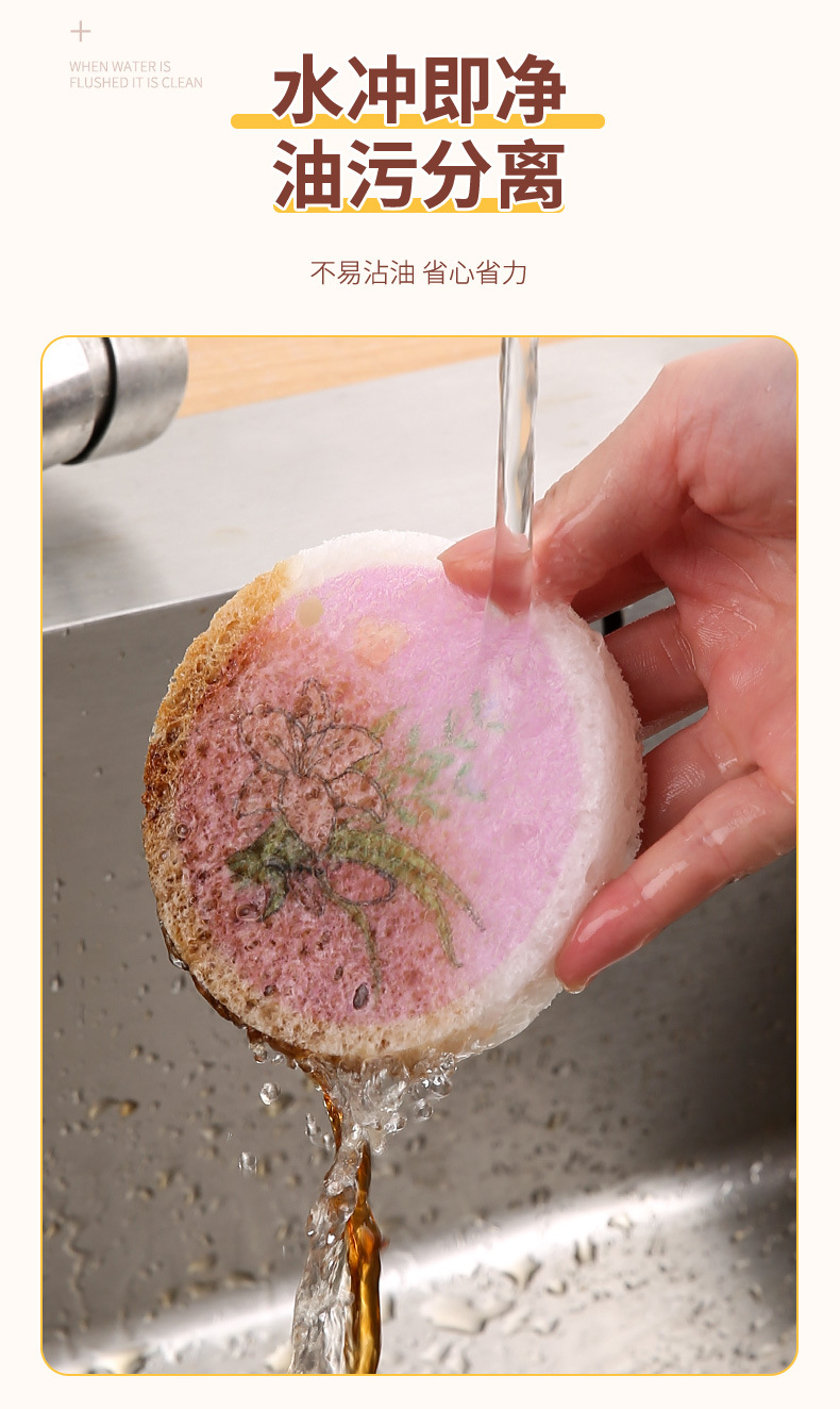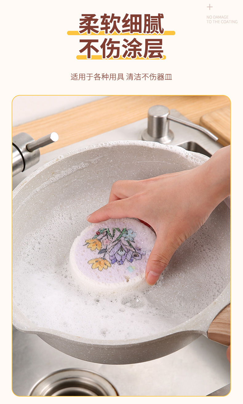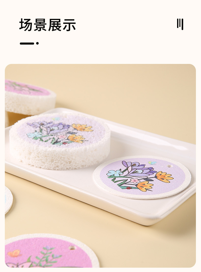 압축 나무 펄프 면 스폰지 닦아 둥근 꽃 나무 펄프 스폰지 식기 세척 브러시 냄비 그릇 주방 청소 식기 세척 수건 행주
