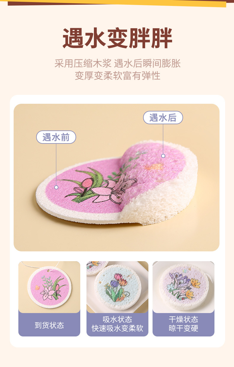 압축 나무 펄프 면 스폰지 닦아 둥근 꽃 나무 펄프 스폰지 식기 세척 브러시 냄비 그릇 주방 청소 식기 세척 수건 행주스토어 가기