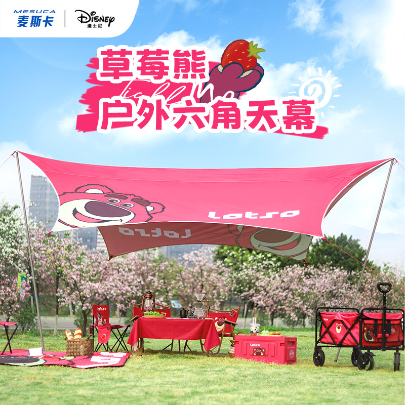 1 디즈니 딸기 곰 야외 캠핑 풀 세트 커튼 접이식 테이블과 의자 캠퍼 피크닉 매트 접이식 상자 테이블 천스토어 가기