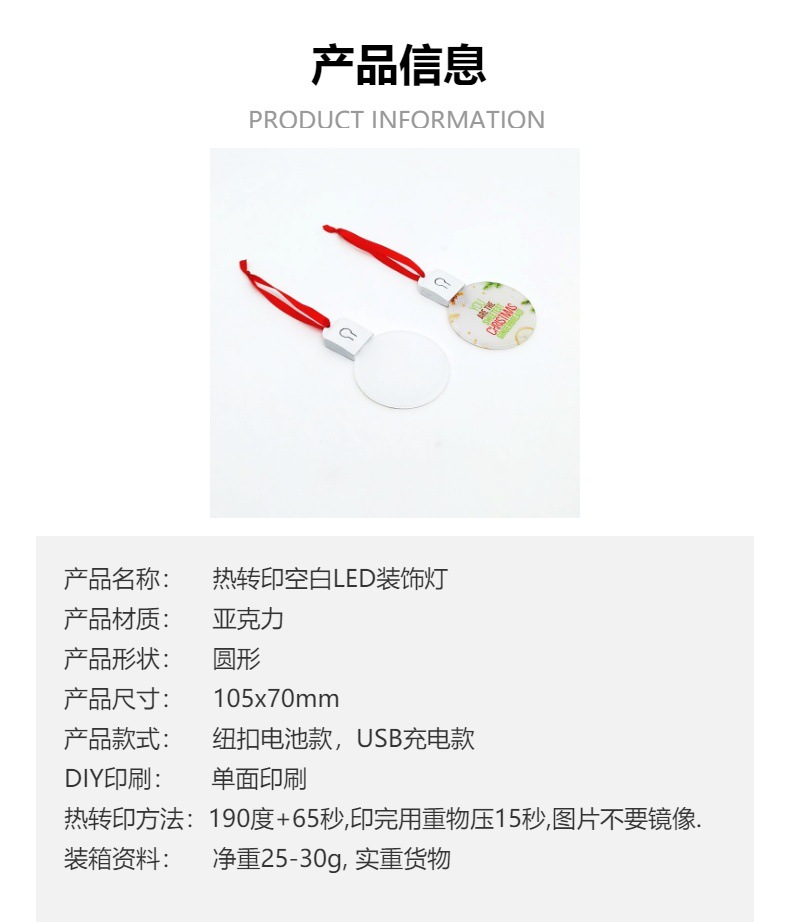 국경 핫 전송 장식 다채로운 LED 빛 승화 LED 야간 공백 라운드 아크릴 DIY스토어 가기