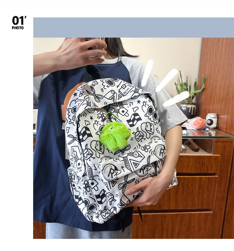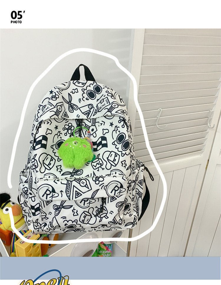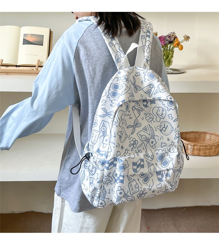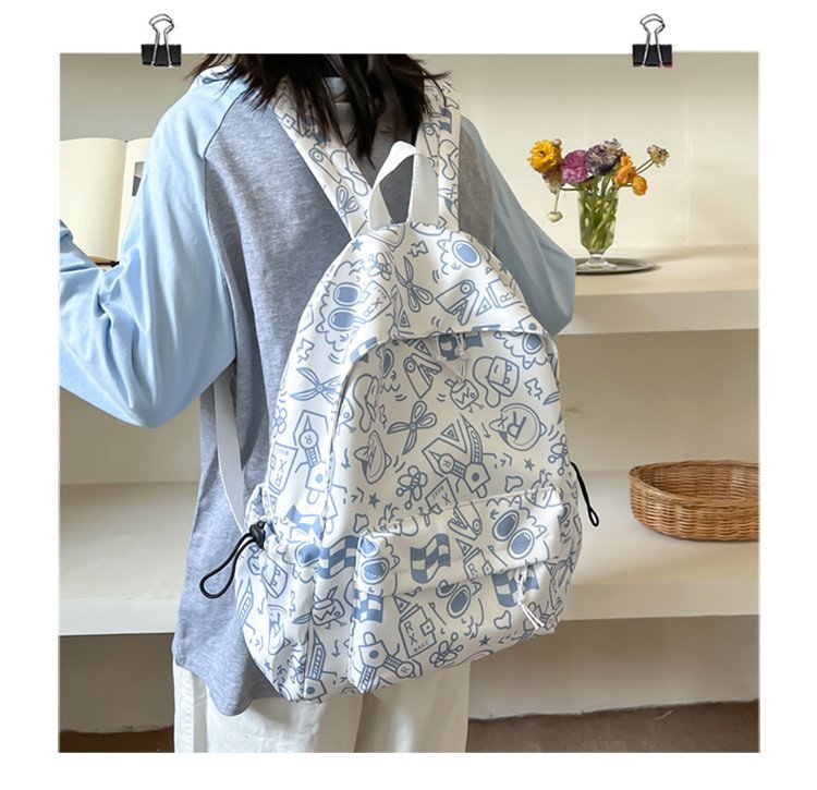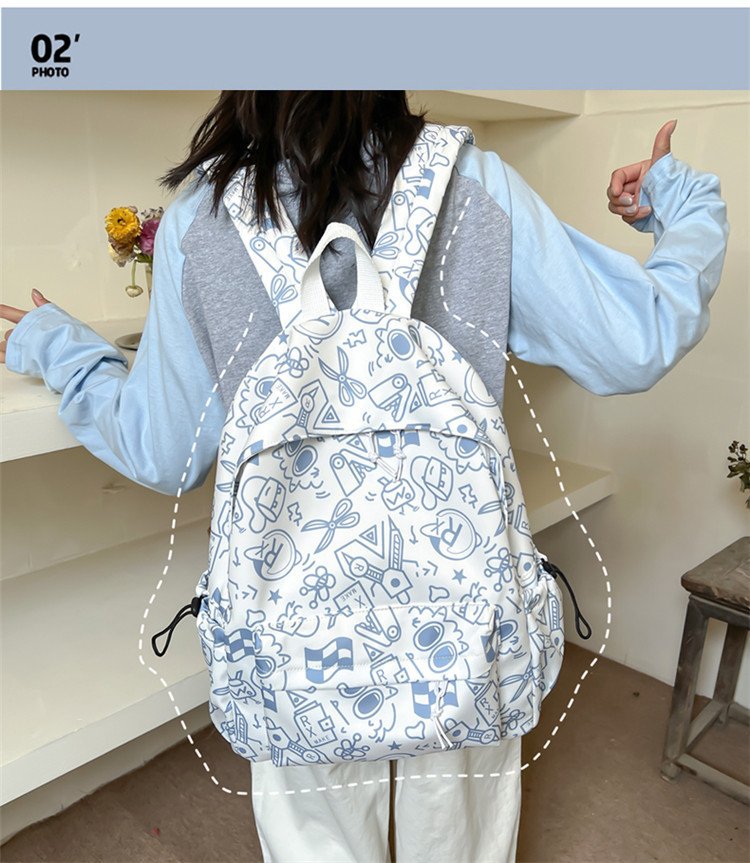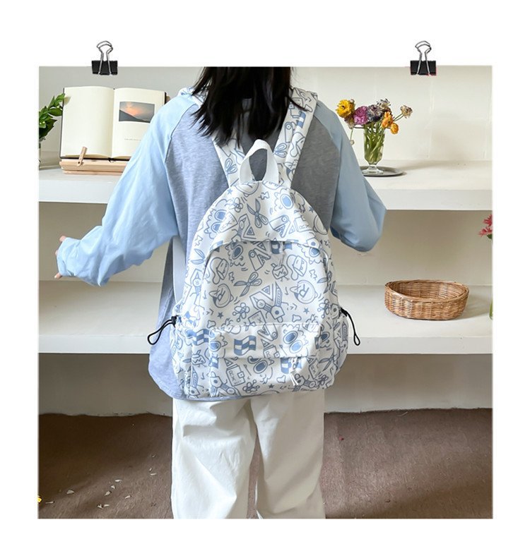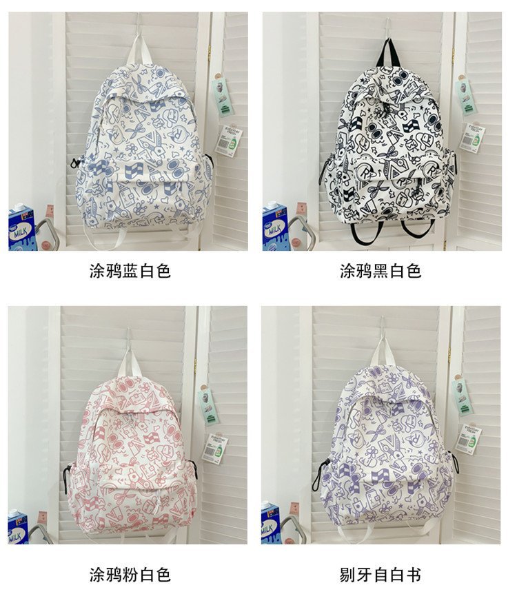 배낭 중학생을위한 여성의 유행 간단한 인쇄 학교 가방 한국 유행 낙서 캐주얼 배낭스토어 가기