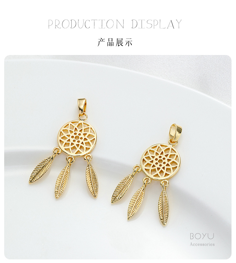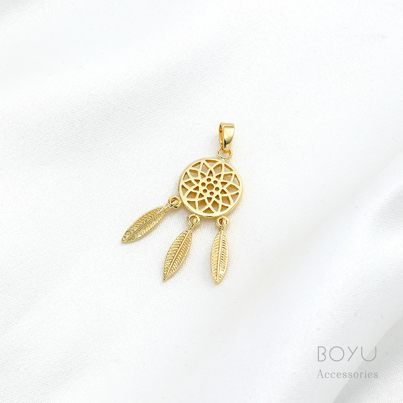 14K 팩 리얼 골드 컬러 보존 플라워 넷 3 매달린 깃털 펜던트 타셀 모리 수제 DIY 클래 클 목걸이 귀걸이 펜던트
