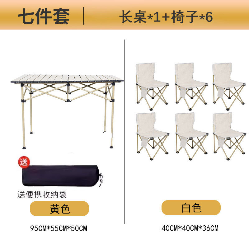 • 패키지 C 7 종 세트 (95cm 노랑 테이블 + 흰색 접이식 의자 6 개 + 패키지)