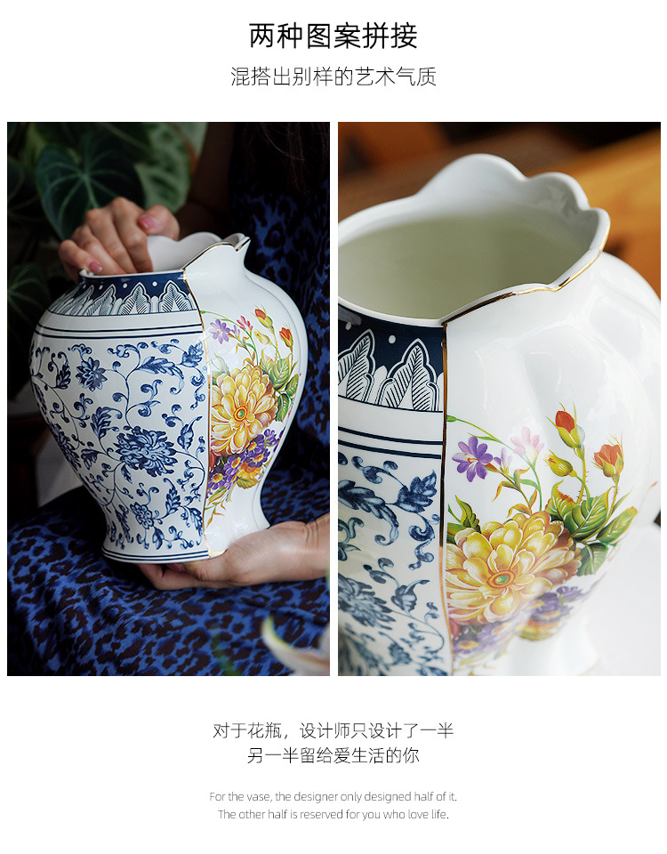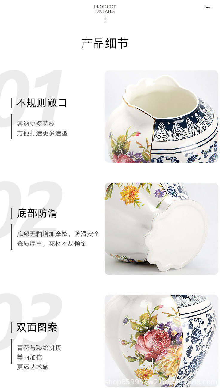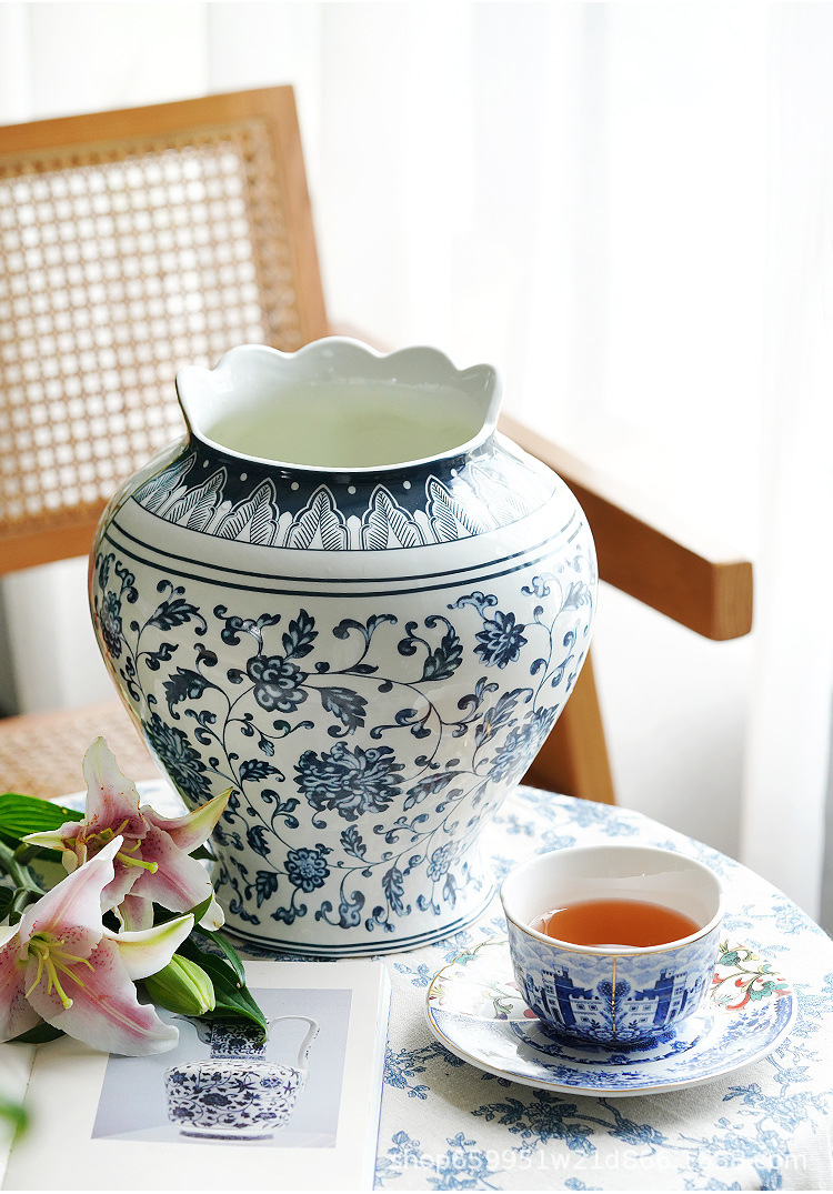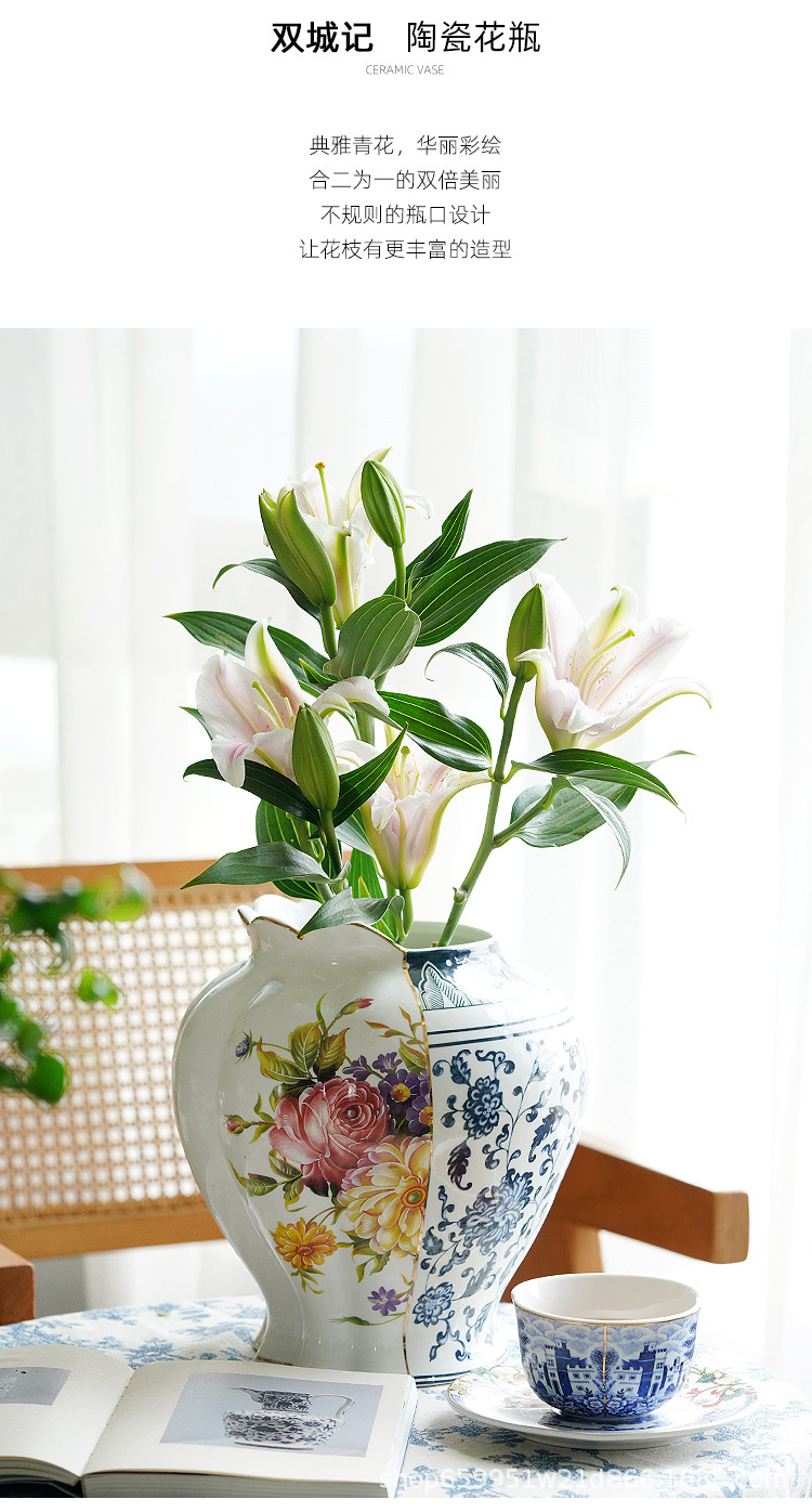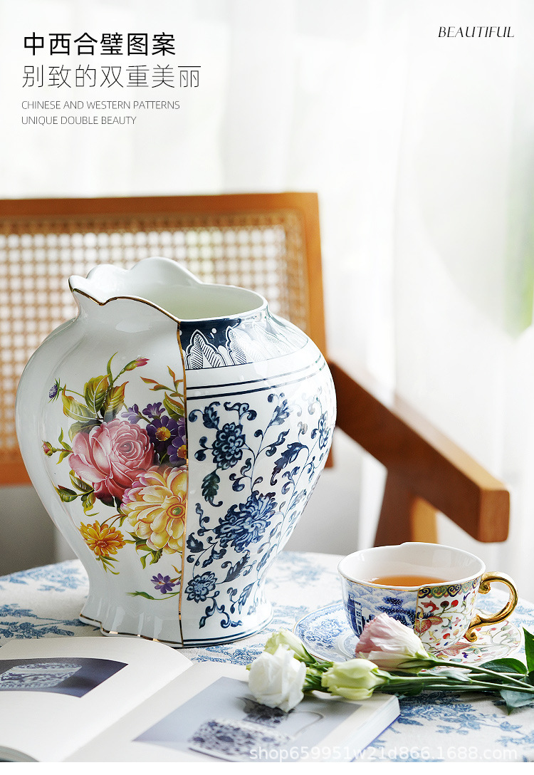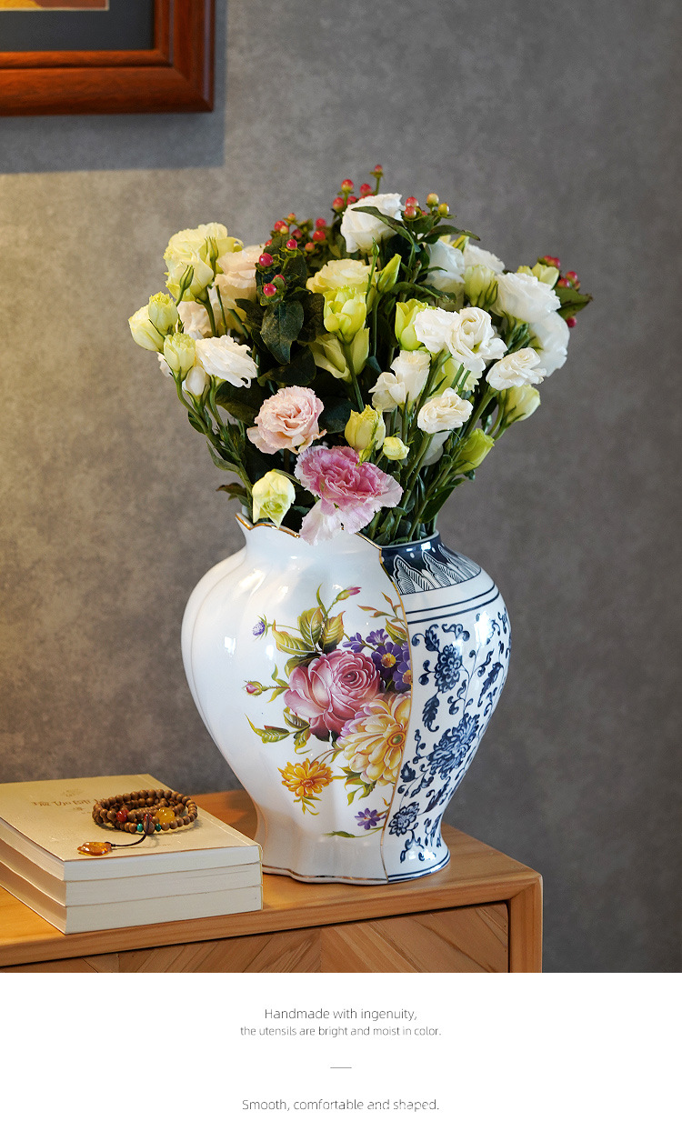 가벼운 고급 중세 스타일 세라믹 꽃병 유럽 복고풍 꽃병 꽃꽂이 하이 엔드 거실 데스크탑 크리 에이 티브 장식품스토어 가기