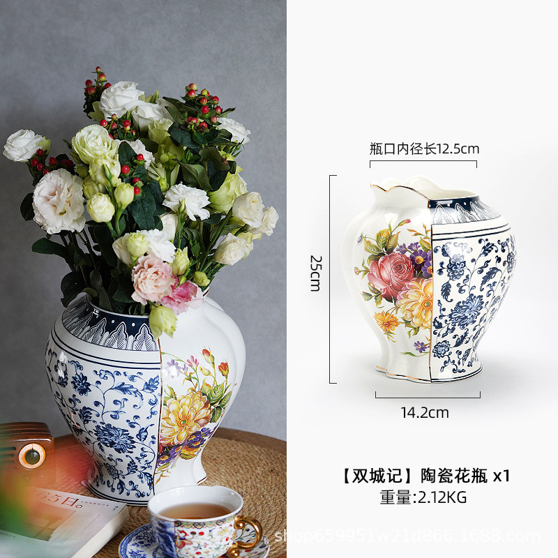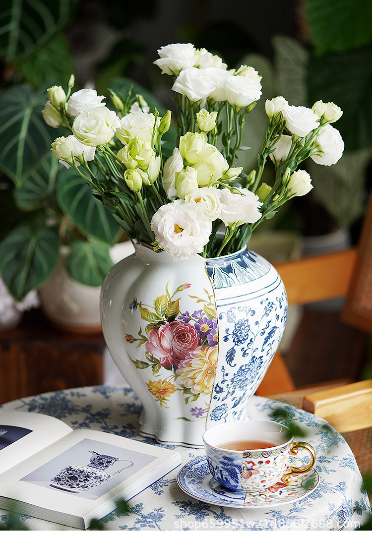 가벼운 고급 중세 스타일 세라믹 꽃병 유럽 복고풍 꽃병 꽃꽂이 하이 엔드 거실 데스크탑 크리 에이 티브 장식품