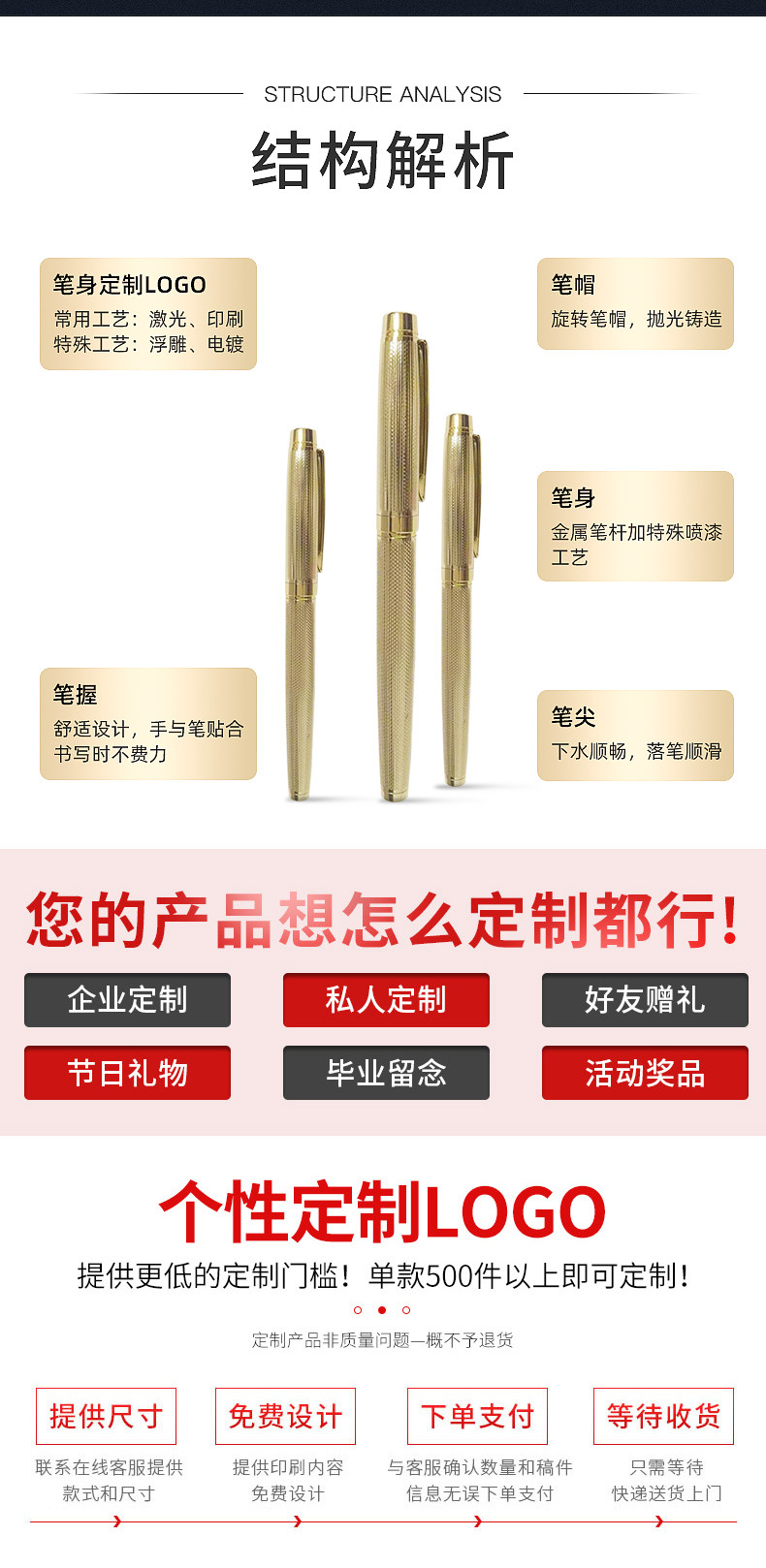 금속 펜 선물 펜 제조 업체 도매 비즈니스 높은 블록 서명 펜 중립 서명 펜 레이저 인쇄 로고