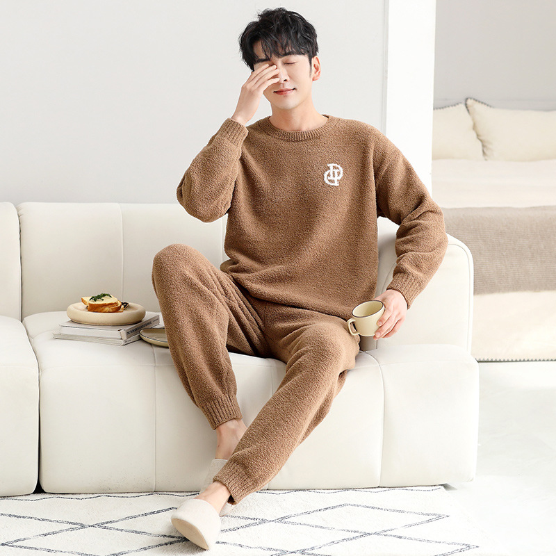 부드러운 가을과 겨울 하프 사이드 벨벳 잠옷 여자의 새로운 커플 홈 의류 산호 벨벳 따뜻한 두꺼운 외부 착용 세트