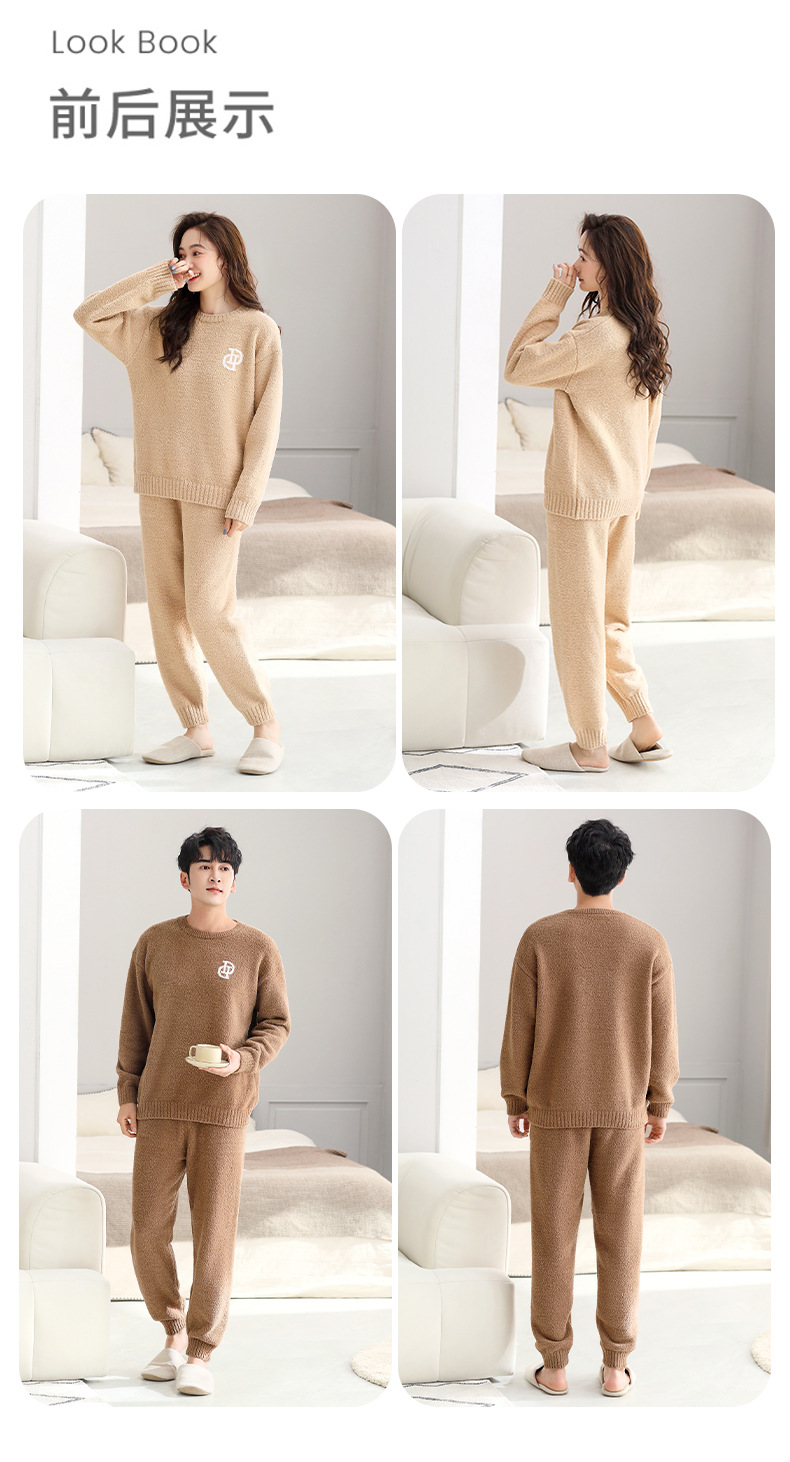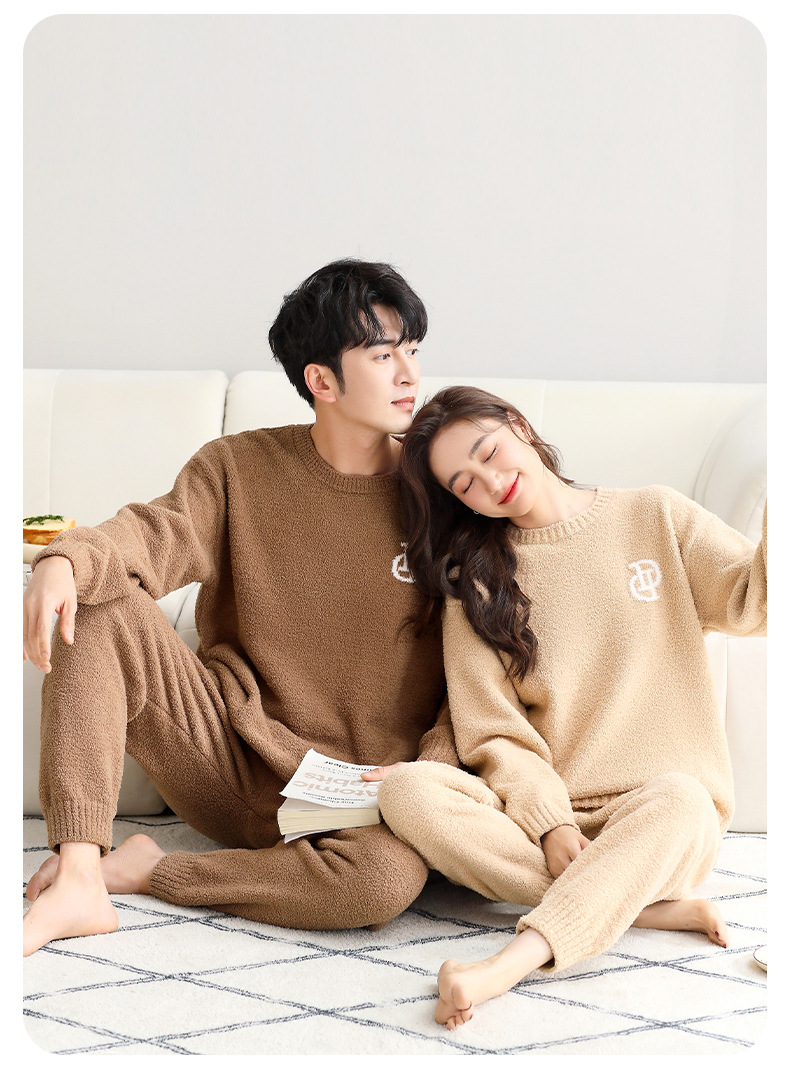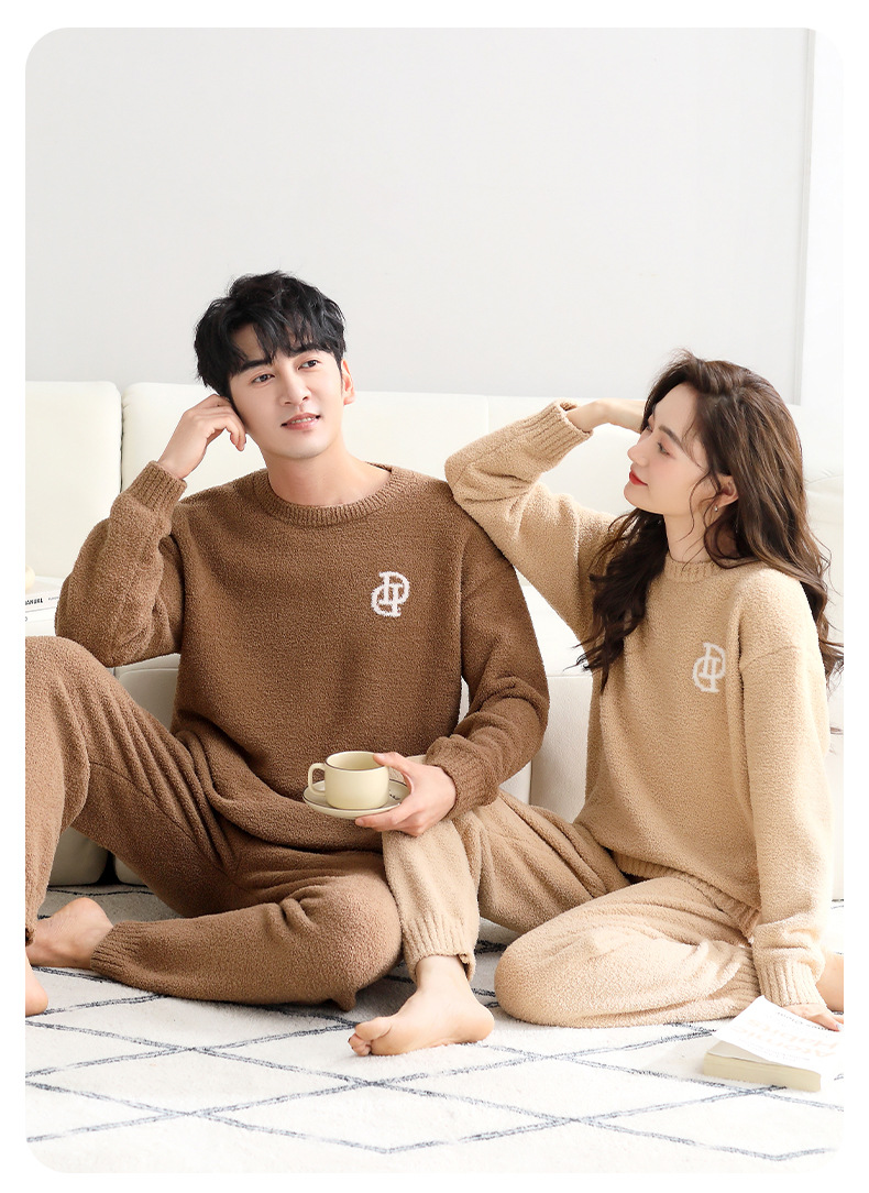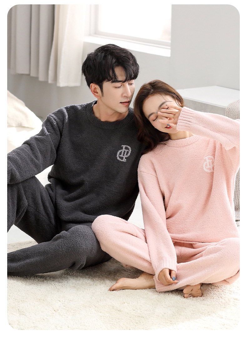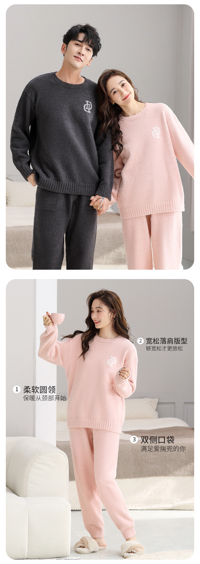 부드러운 가을과 겨울 하프 사이드 벨벳 잠옷 여자의 새로운 커플 홈 의류 산호 벨벳 따뜻한 두꺼운 외부 착용 세트스토어 가기