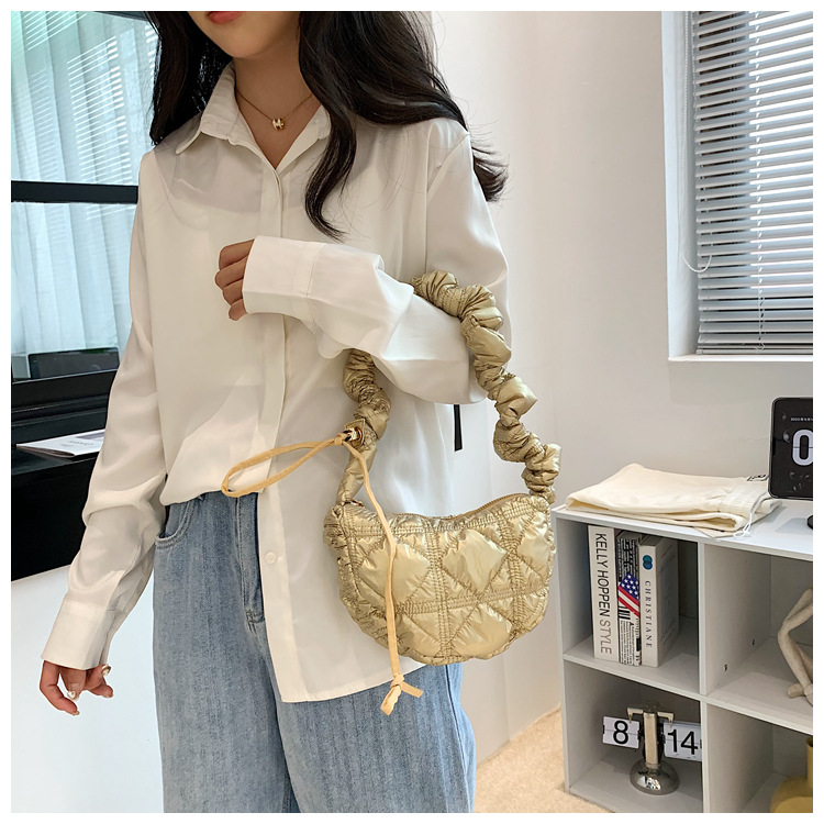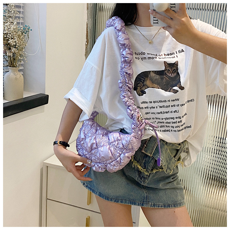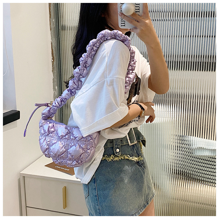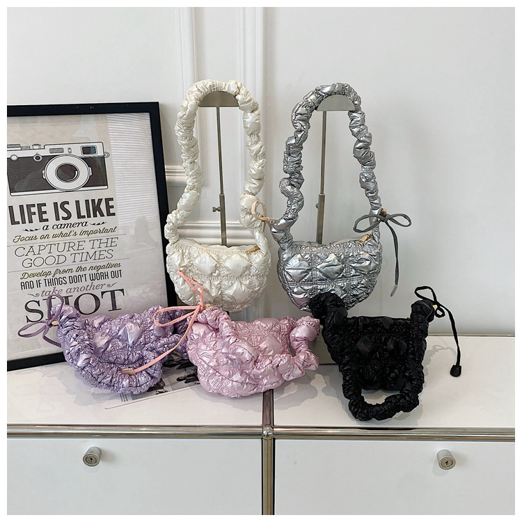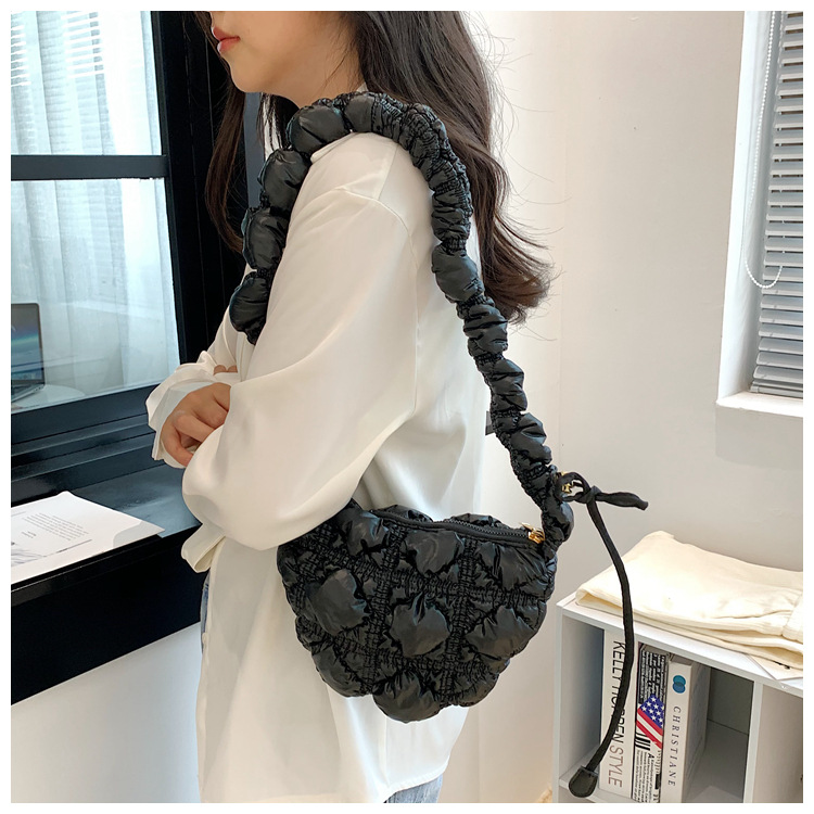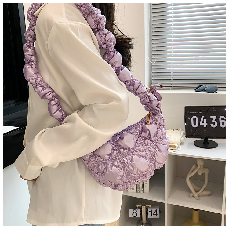2023 가을과 겨울 새로운 틈새 디자인 숄더백 여러 가지 빛깔의 구름 주름 크로스 바디 백 캐주얼 미니 만두 가방스토어 가기
