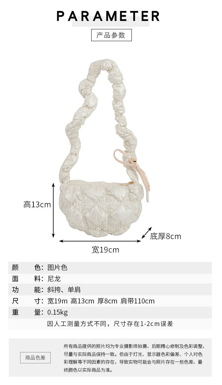 2023 가을과 겨울 새로운 틈새 디자인 숄더백 여러 가지 빛깔의 구름 주름 크로스 바디 백 캐주얼 미니 만두 가방