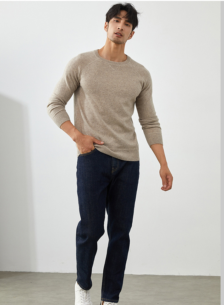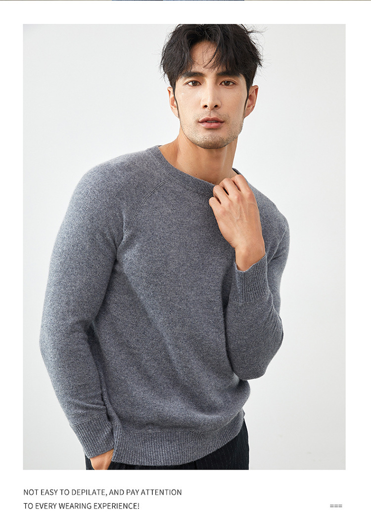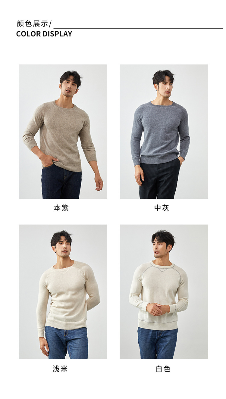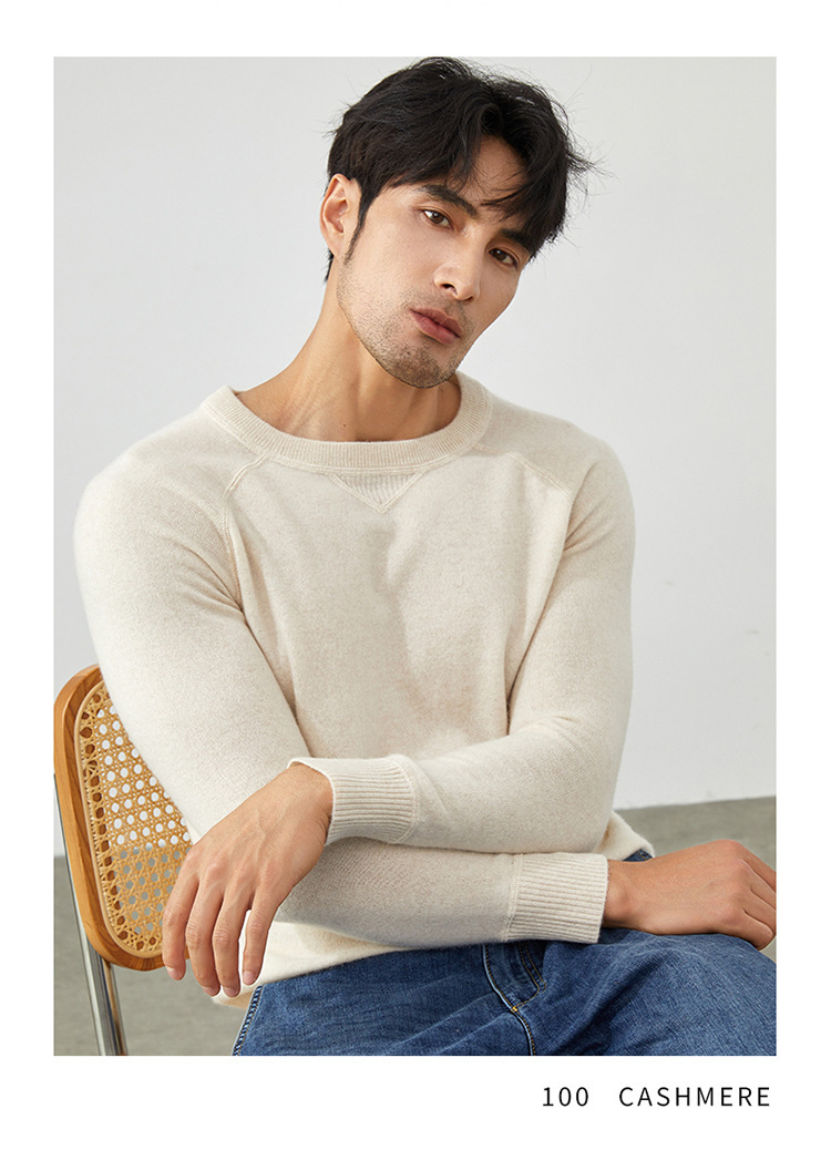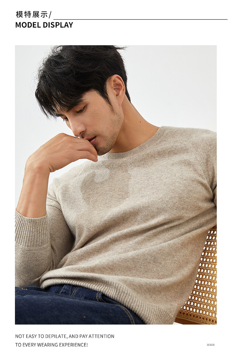100%纯山羊绒2023秋冬新款男士POLO领套头短款针织衫保暖宽松毛衣