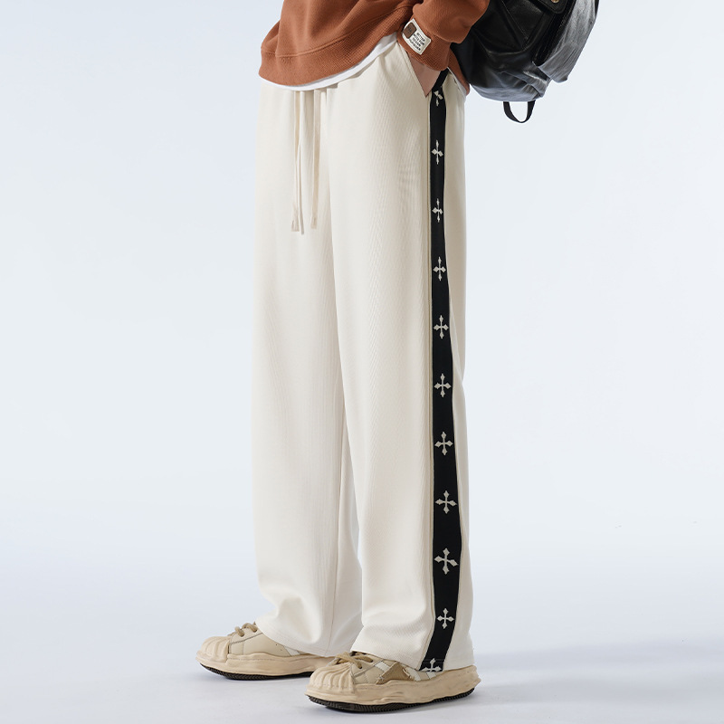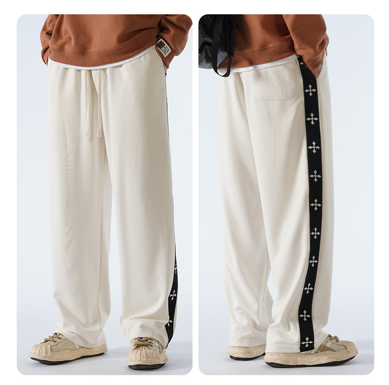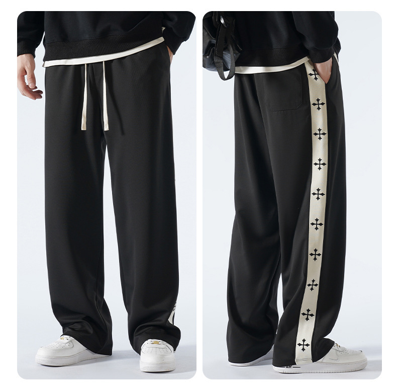 봄과 가을 23 남성 캐주얼 스트레이트 바지 홍콩 스타일 느슨한 와이드 발 바지 일본 남성 와이드 다리스토어 가기