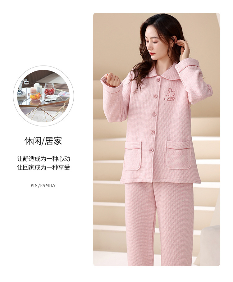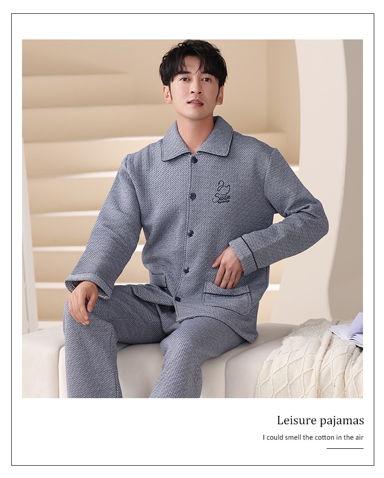 2023 가을과 겨울 커플 잠옷 여자의 얇은 면 면 면 두꺼운 공기 면 샌드위치 남자의 가정 옷 세트