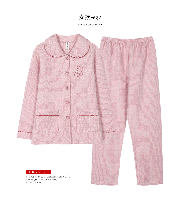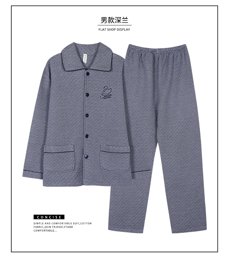 2023 가을과 겨울 커플 잠옷 여자의 얇은 면 면 면 두꺼운 공기 면 샌드위치 남자의 가정 옷 세트스토어 가기