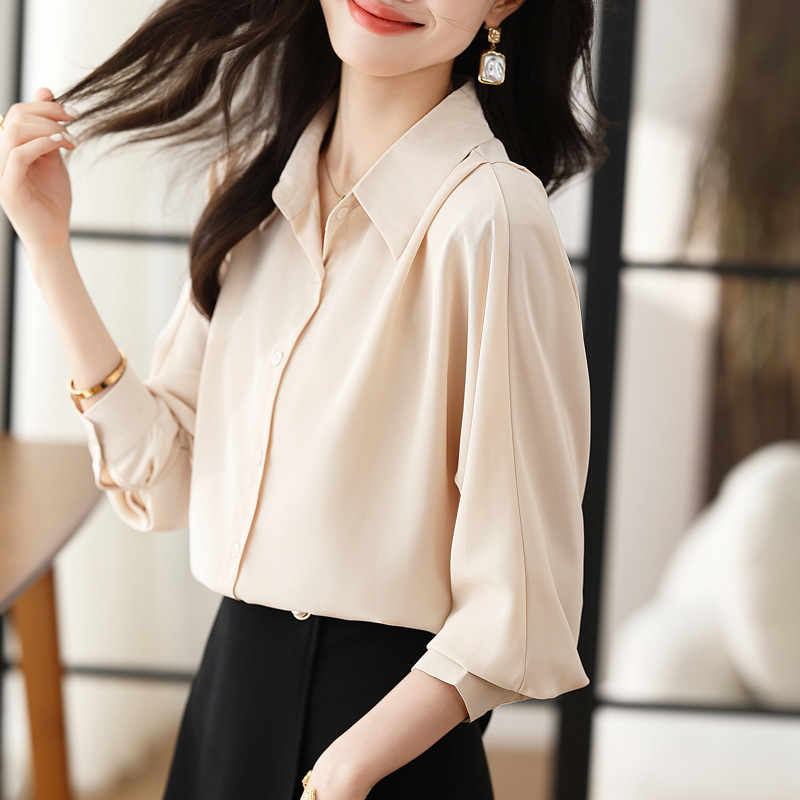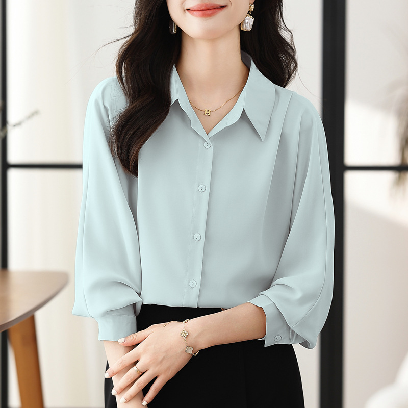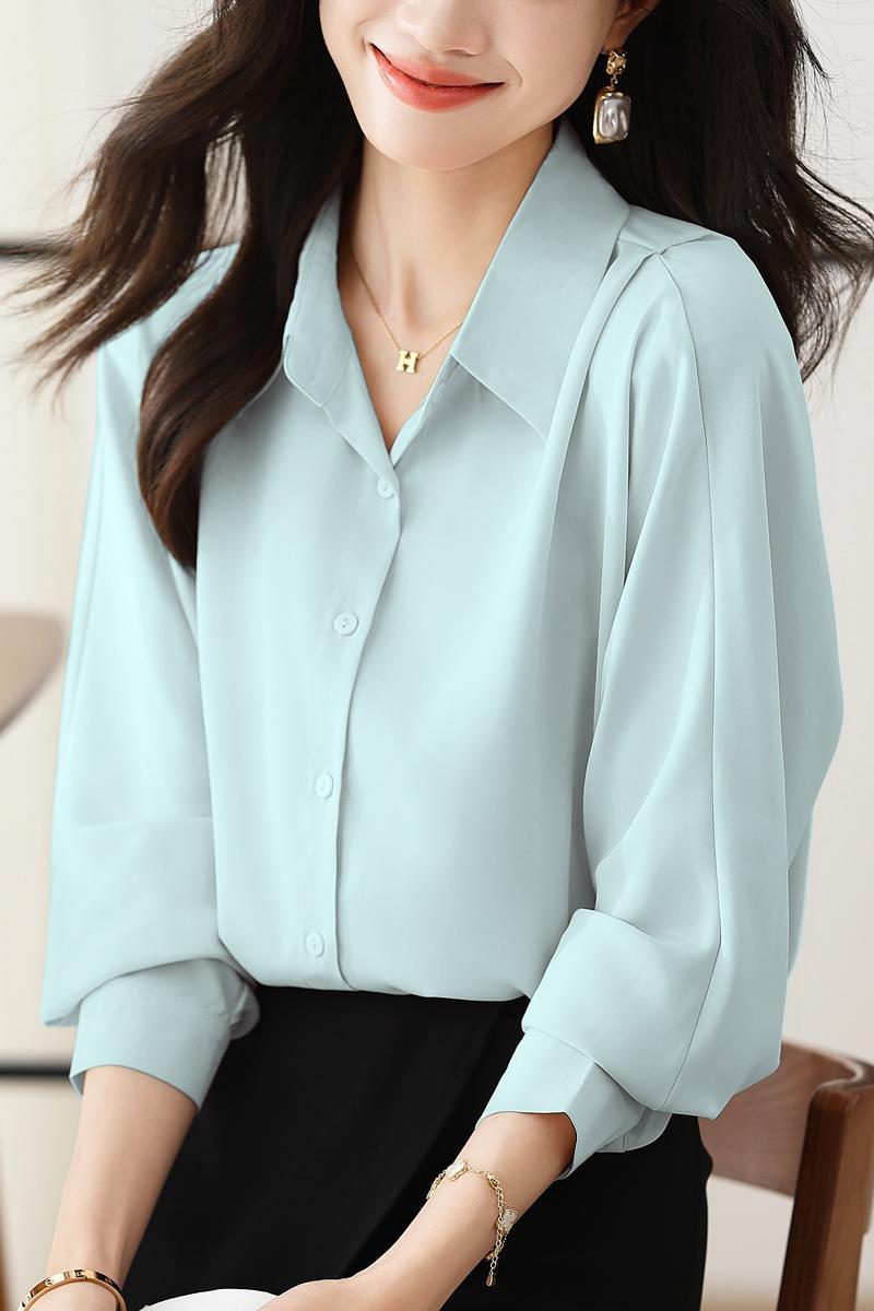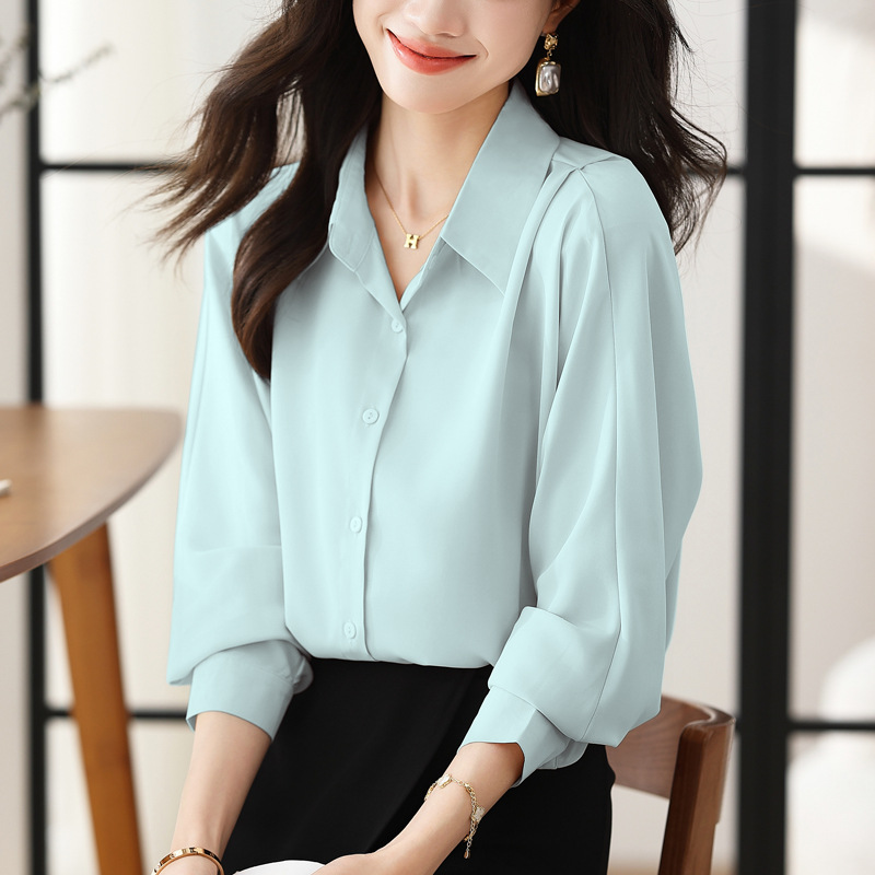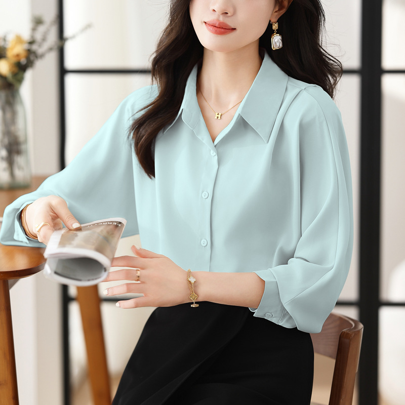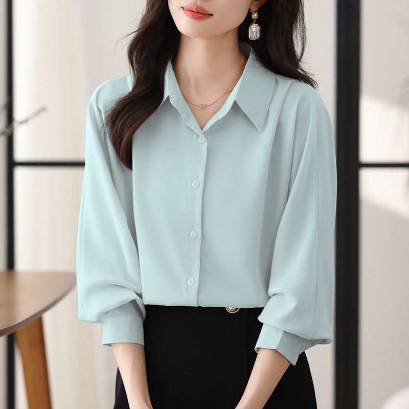 리얼 셔츠 여성의 디자인 감각 틈새 2023 가을 새로운 느슨한 쉬폰 긴팔 탑 ol 통근 셔츠