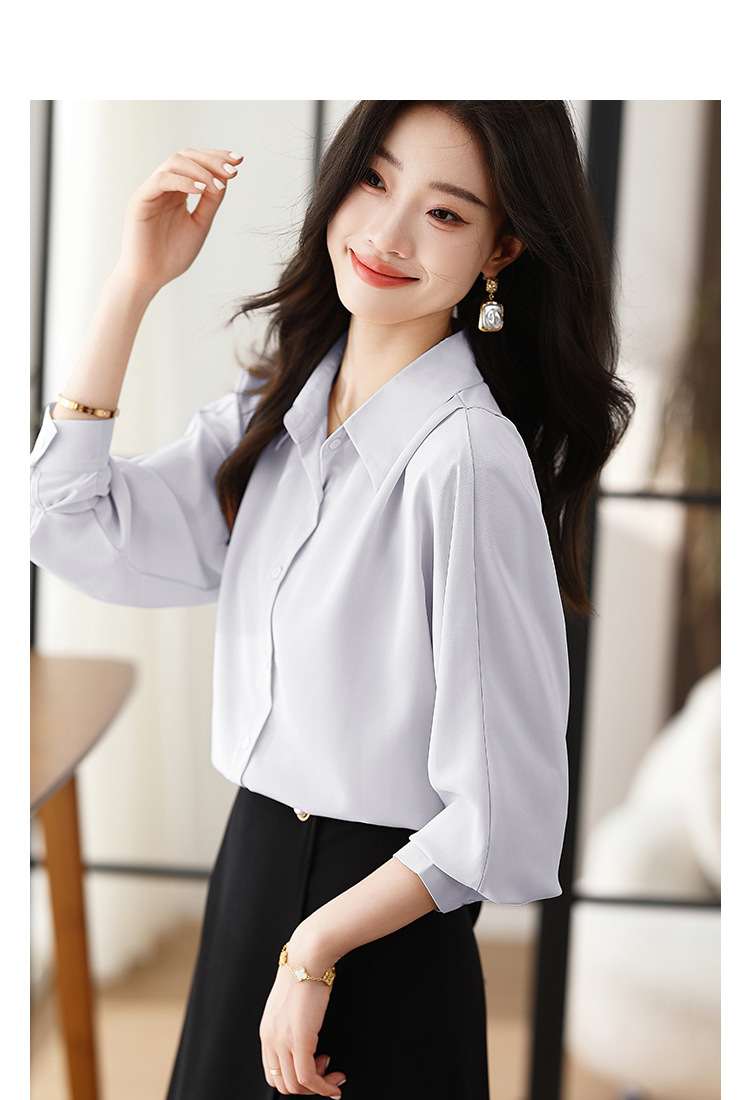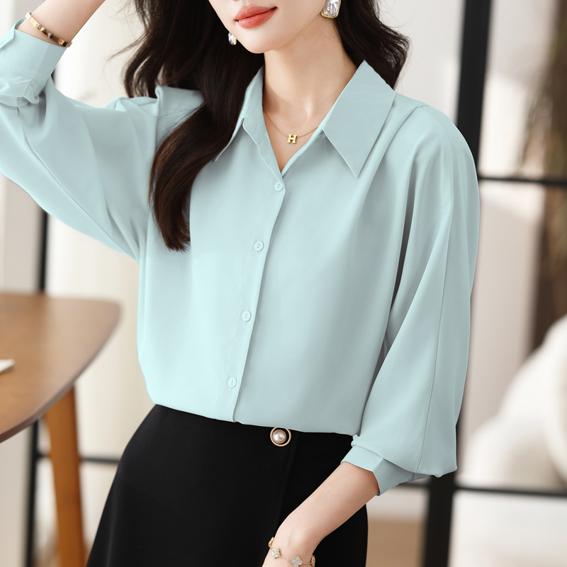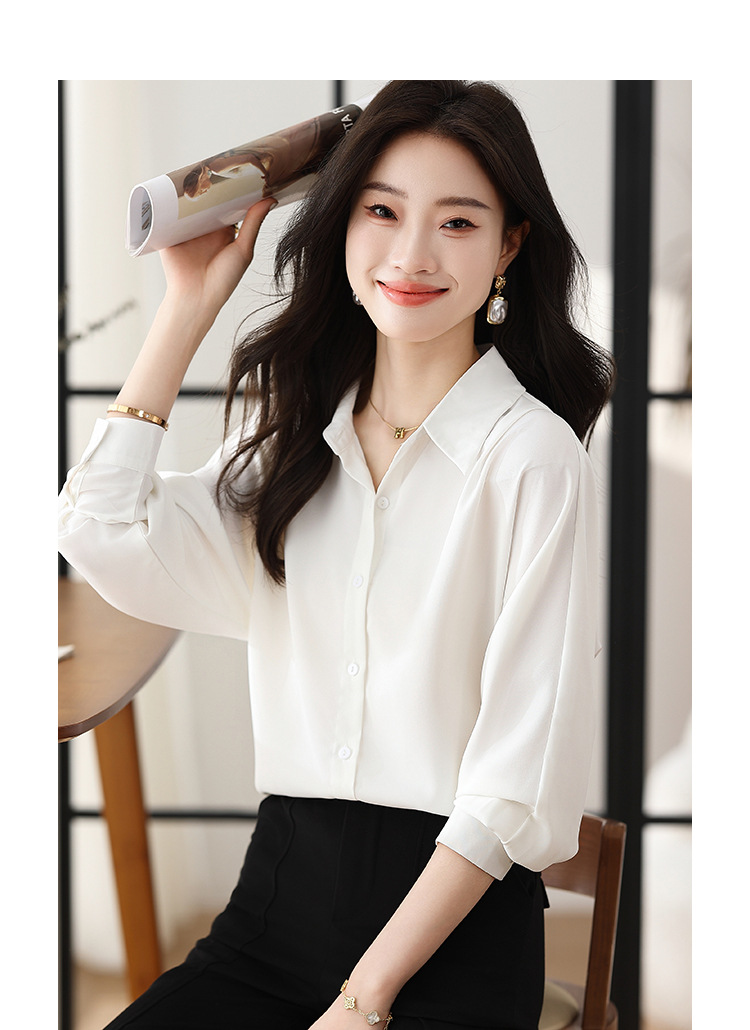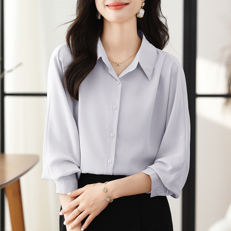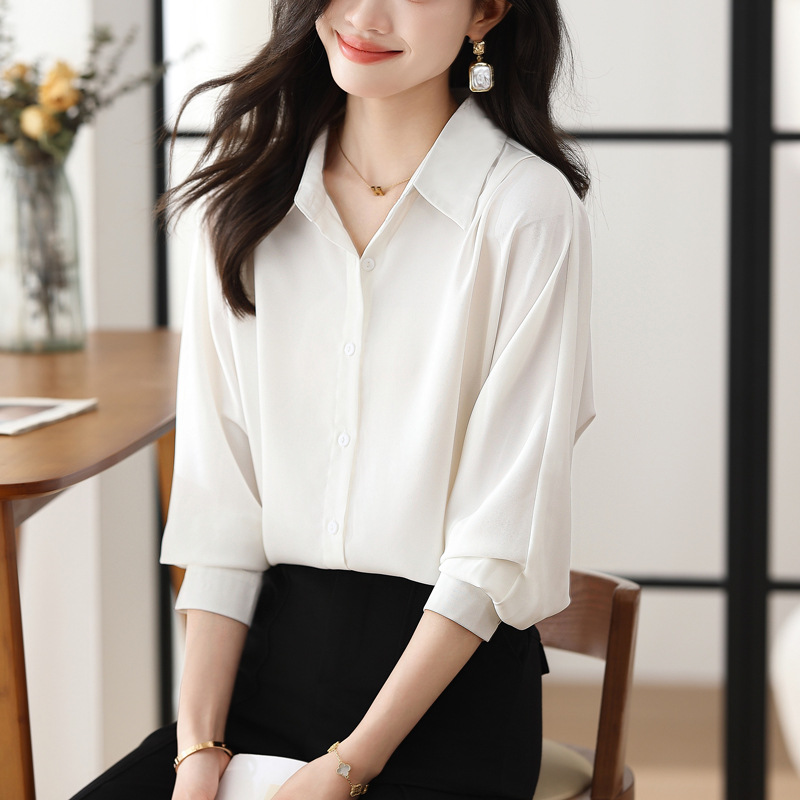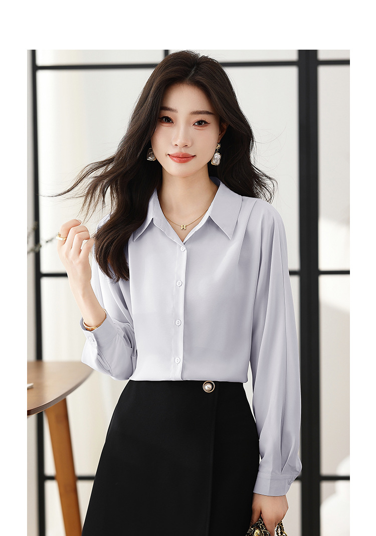 리얼 셔츠 여성의 디자인 감각 틈새 2023 가을 새로운 느슨한 쉬폰 긴팔 탑 ol 통근 셔츠스토어 가기