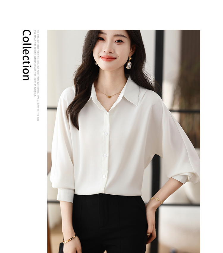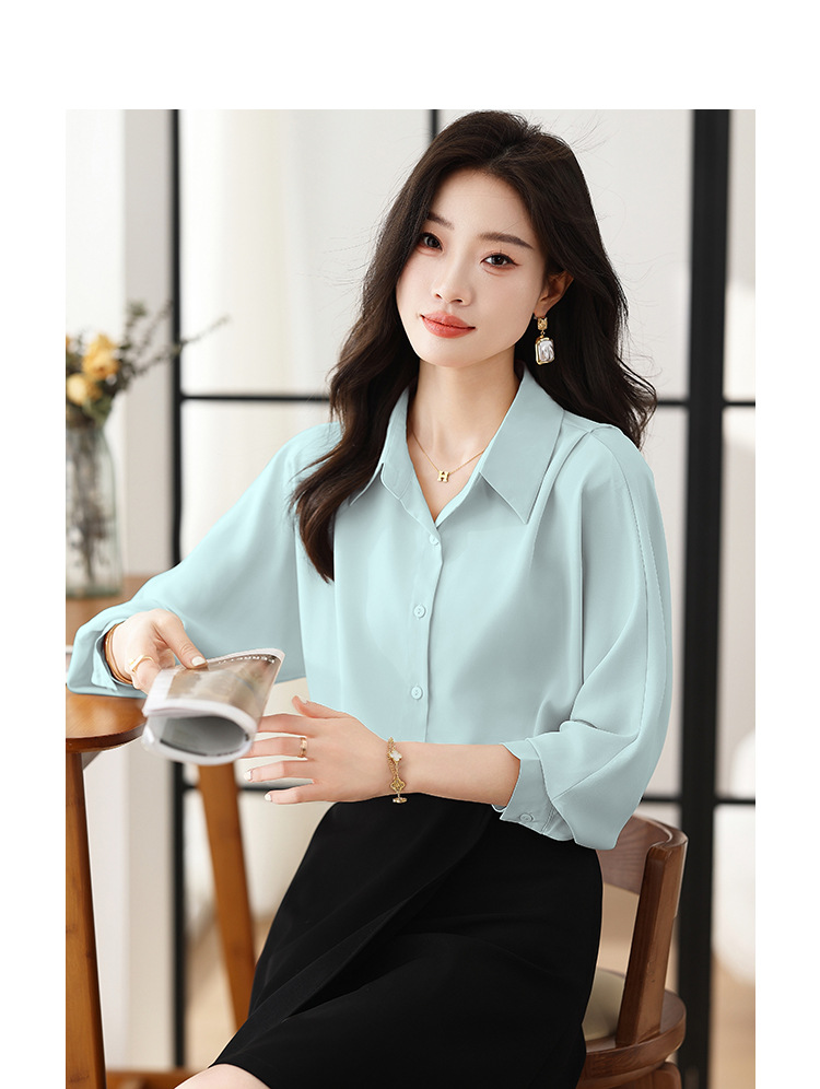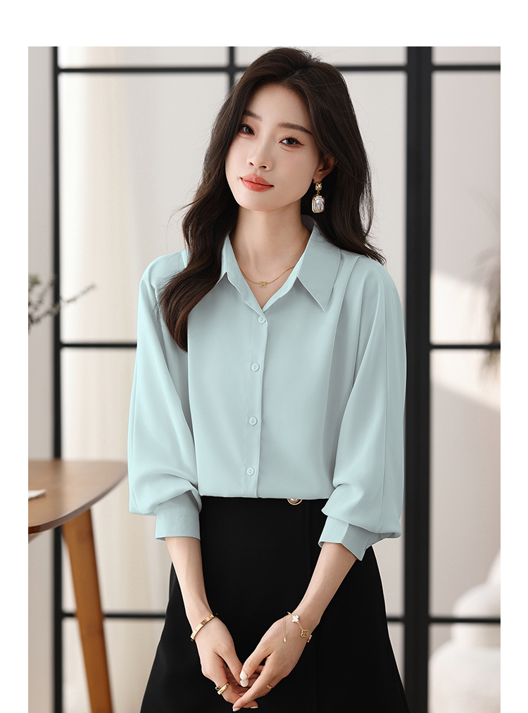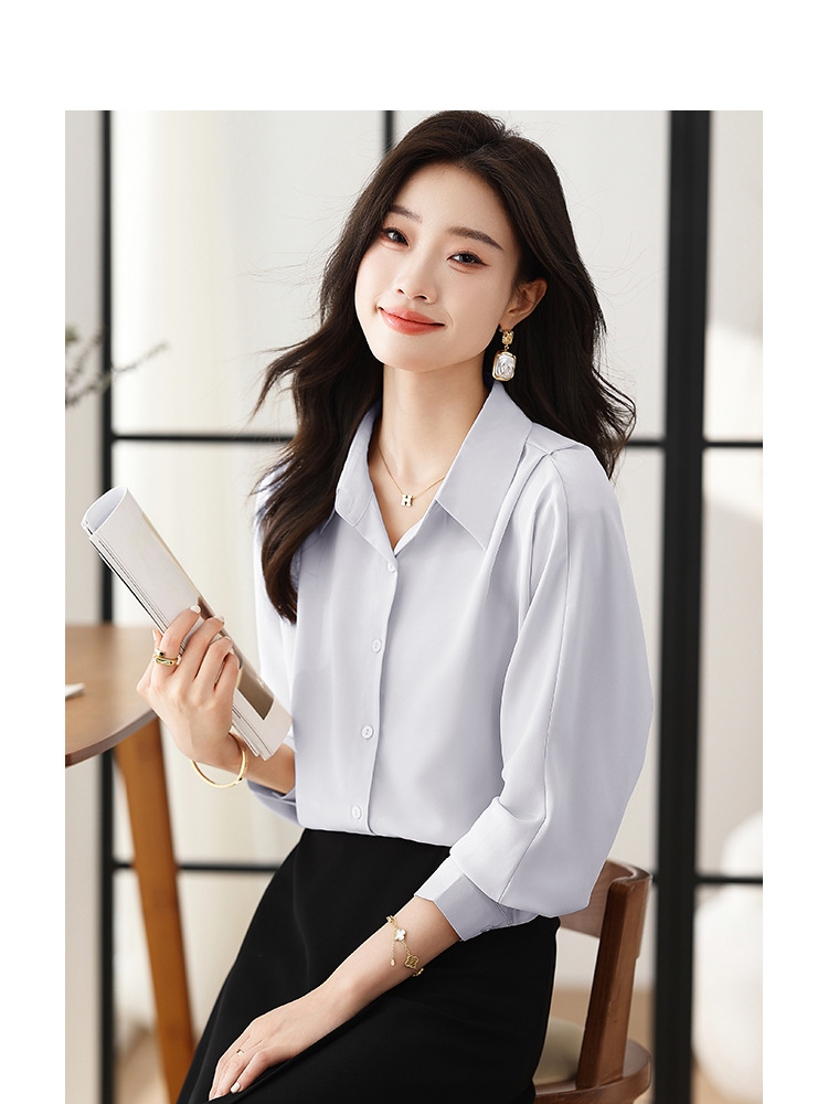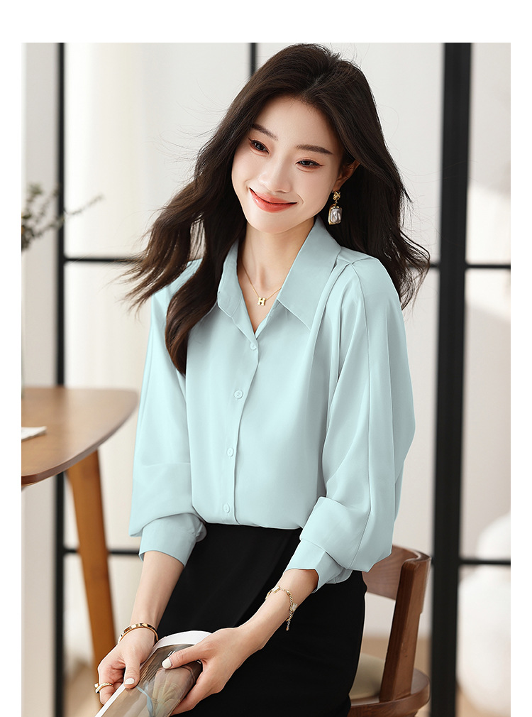 리얼 셔츠 여성의 디자인 감각 틈새 2023 가을 새로운 느슨한 쉬폰 긴팔 탑 ol 통근 셔츠스토어 가기