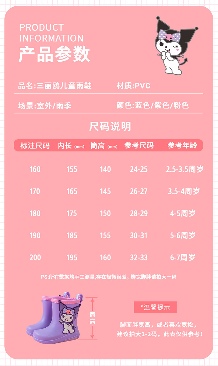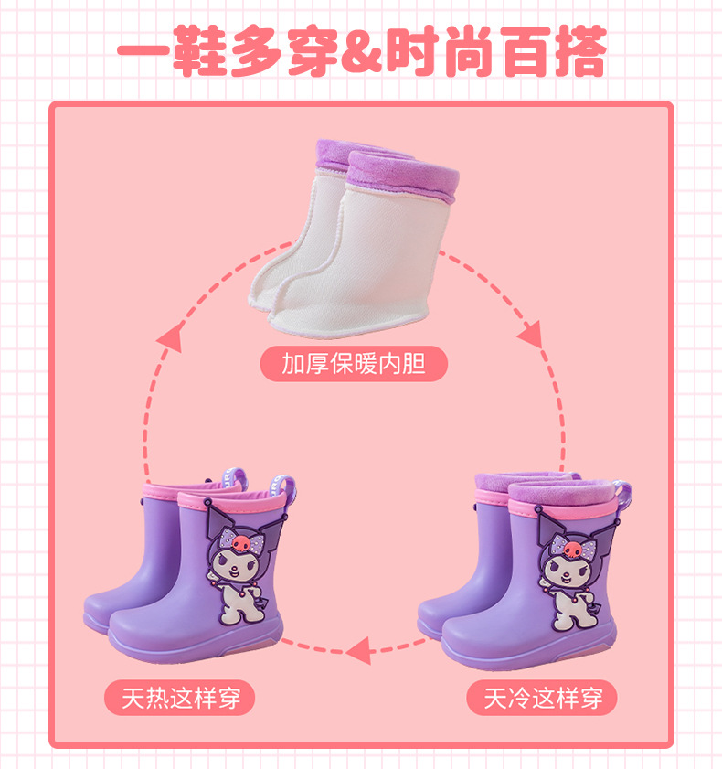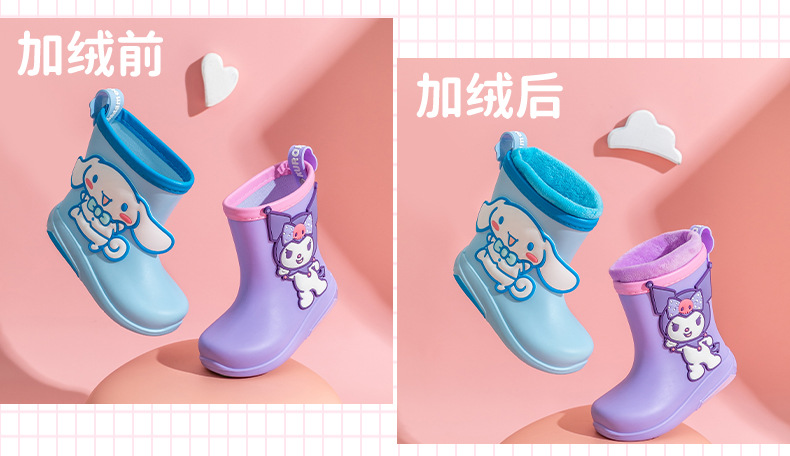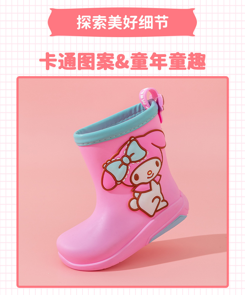 새로운 Sanrio 어린이 장화 어린이 미끄럼 방지 내마모성 야외 소녀 장화 초등학생을위한 비오는 날 방수 물 신발
