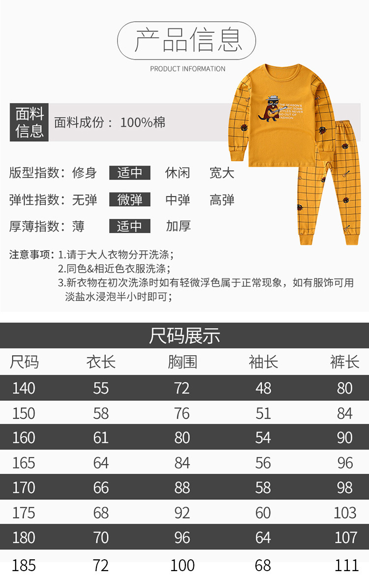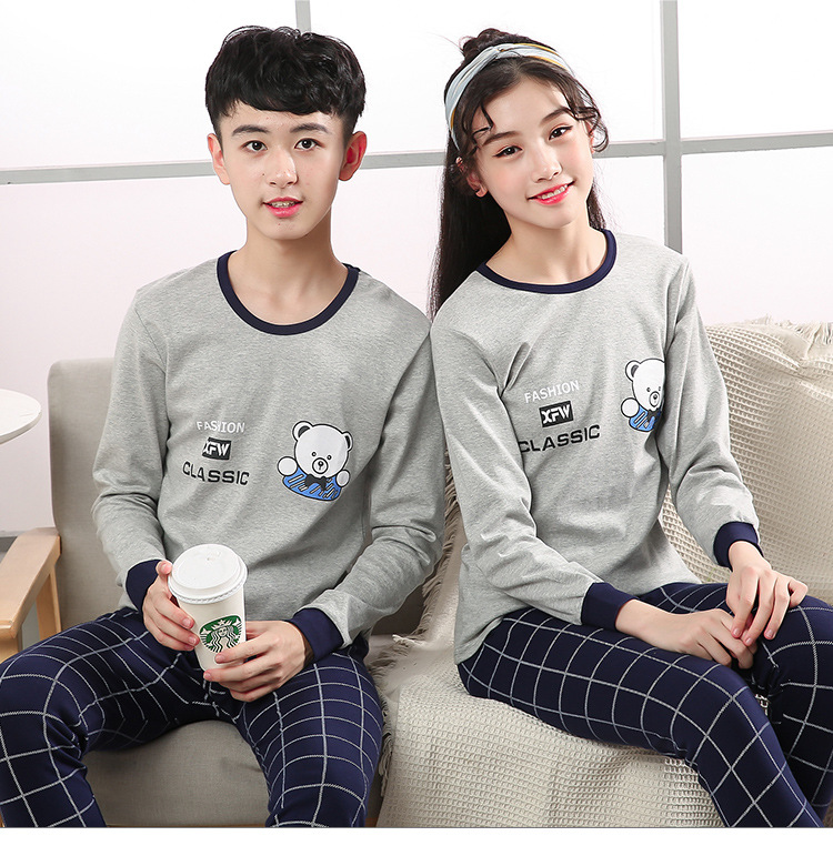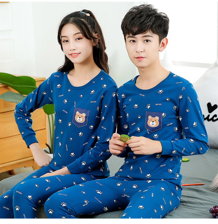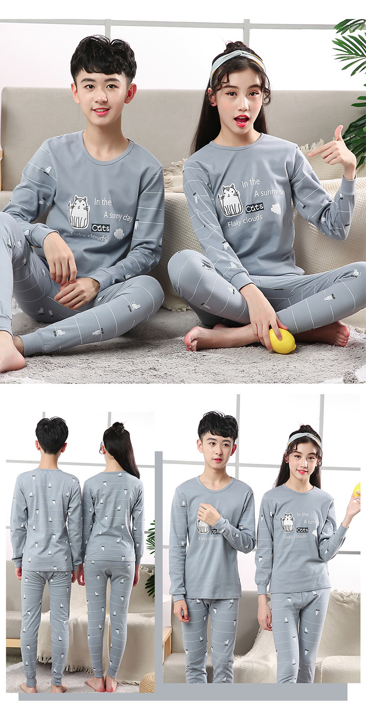 봄과 가을 새로운 청소년 면화 속옷 세트 어린이 가을 옷과 바지 홈 옷 중학생 아동복 도매스토어 가기