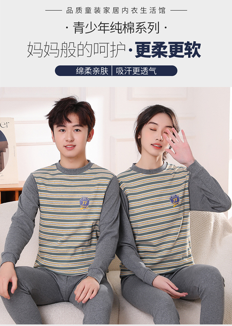 봄과 가을 새로운 청소년 면화 속옷 세트 어린이 가을 옷과 바지 홈 옷 중학생 아동복 도매
