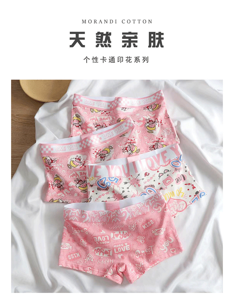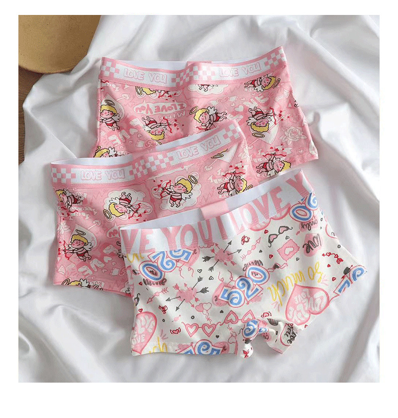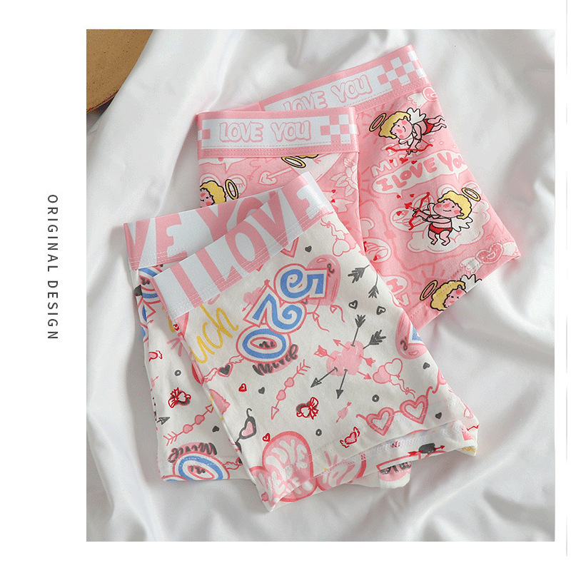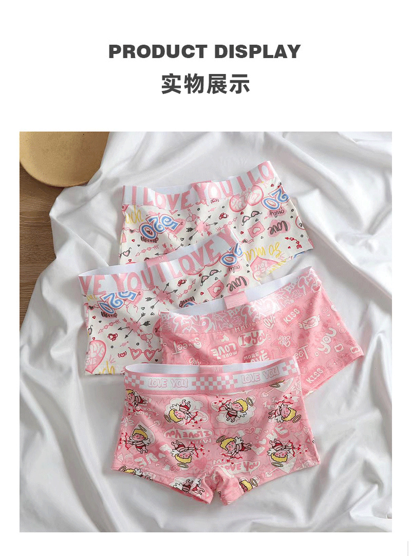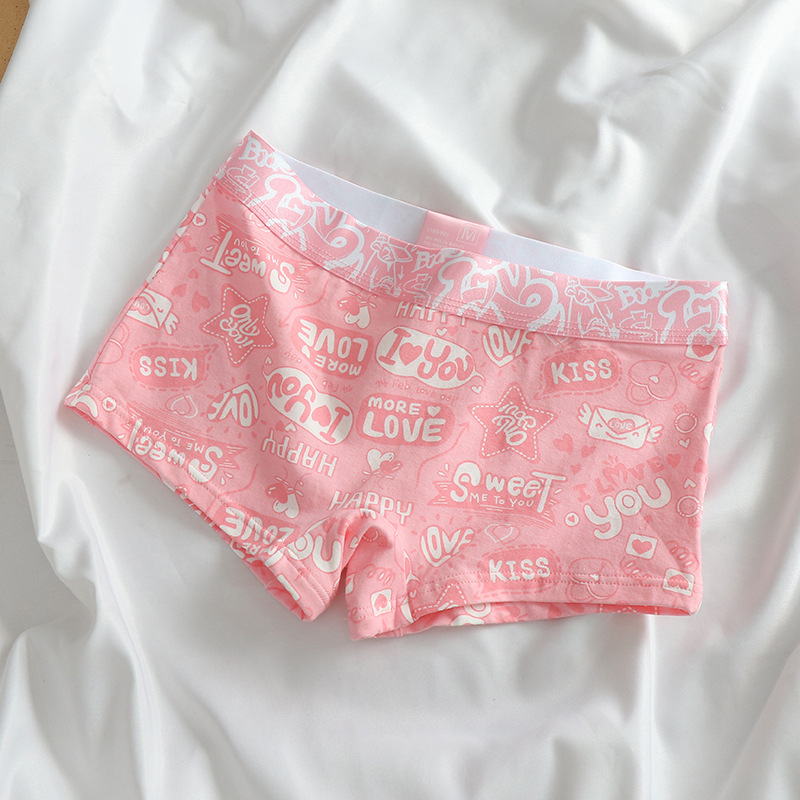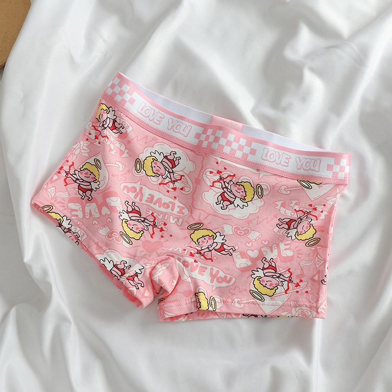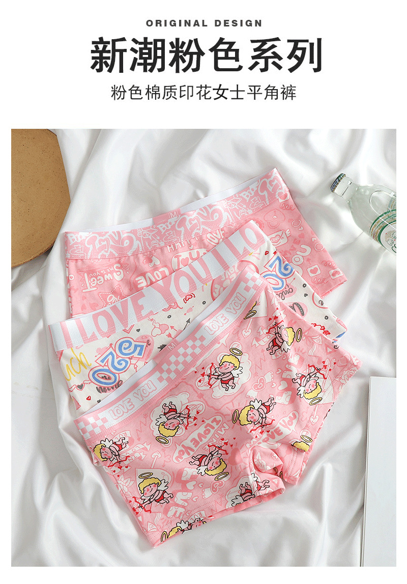 여성용 속옷, 여자아이 순면 사각팬티, 핑크색 만화 캐릭터, 통기성, 스포츠, 편안한 사각팬티스토어 가기