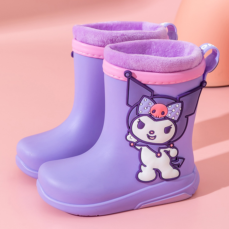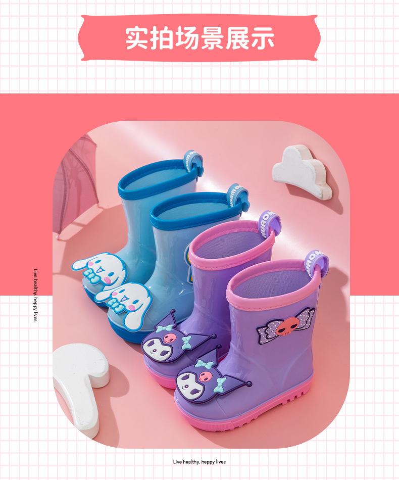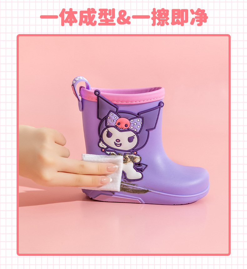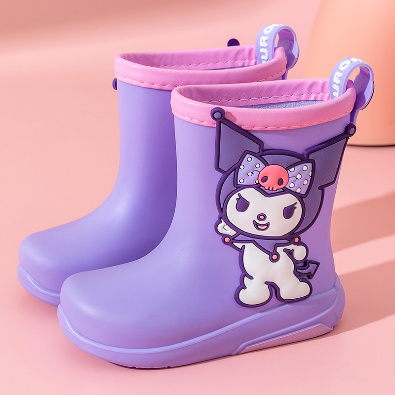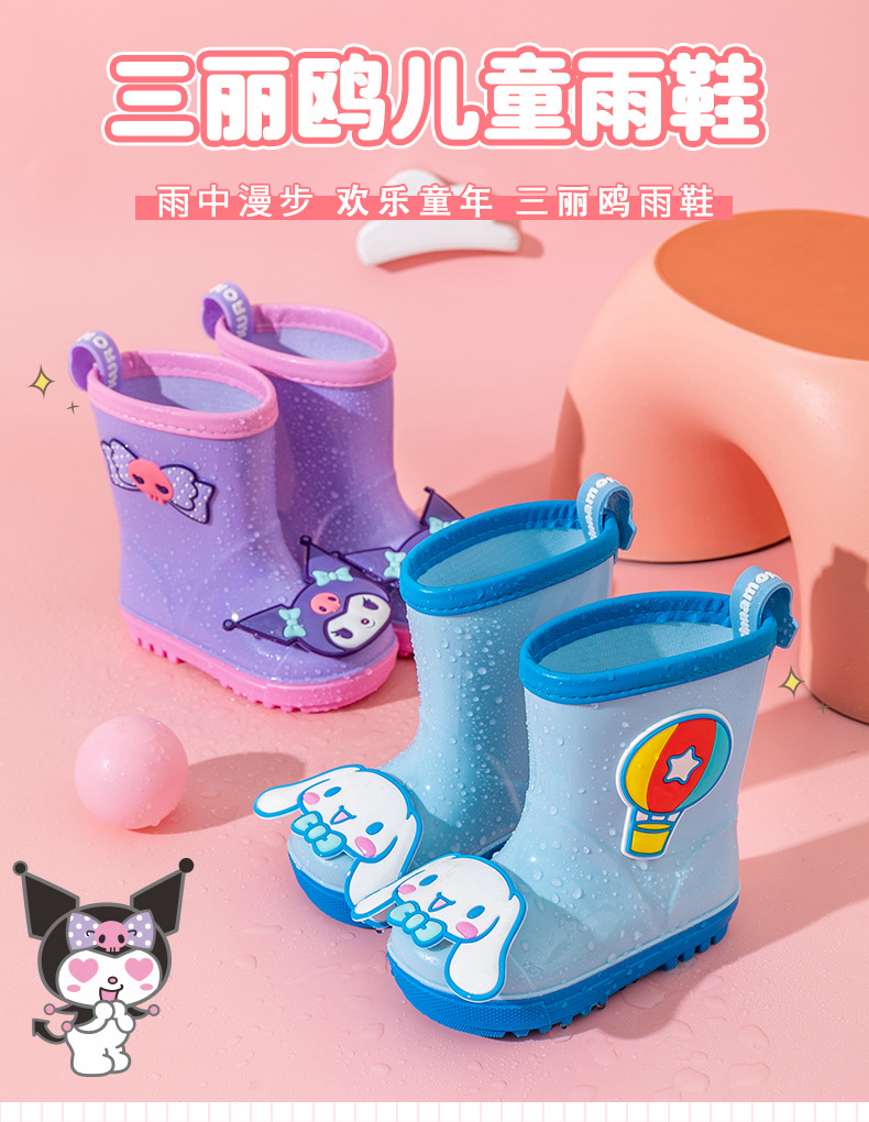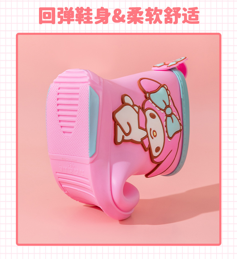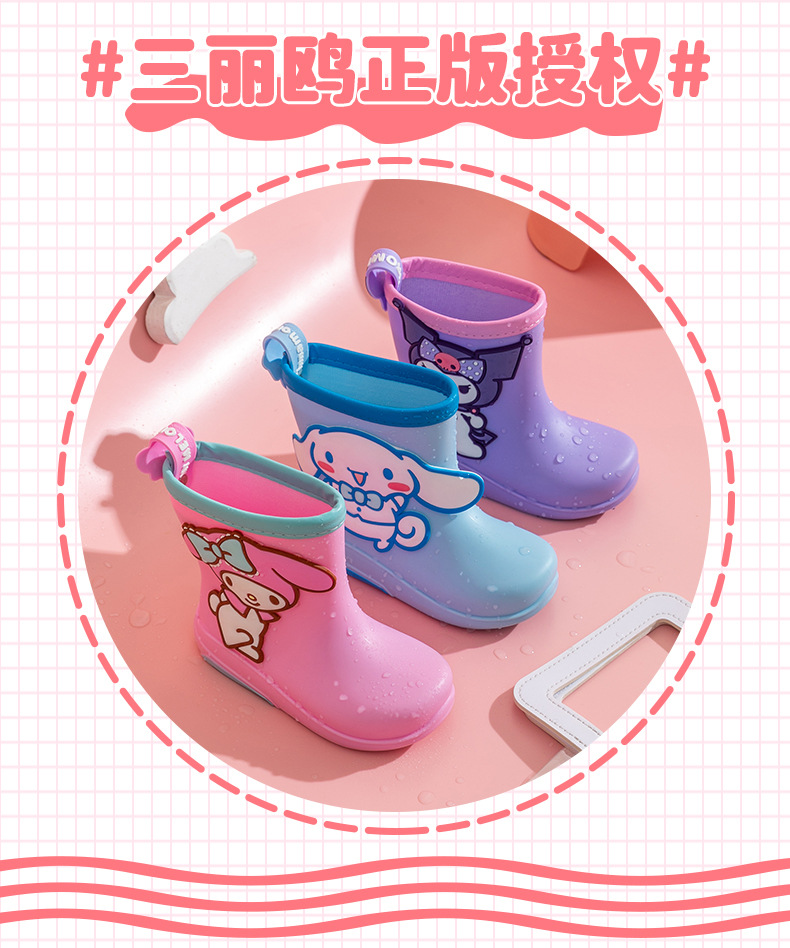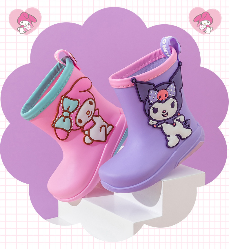 Sanrio 어린이 미드 튜브 레인 부츠 새로운 만화 귀여운 어린이 방수 레인 부츠 소녀 야외 미끄럼 방지 내마모성 워터 신발