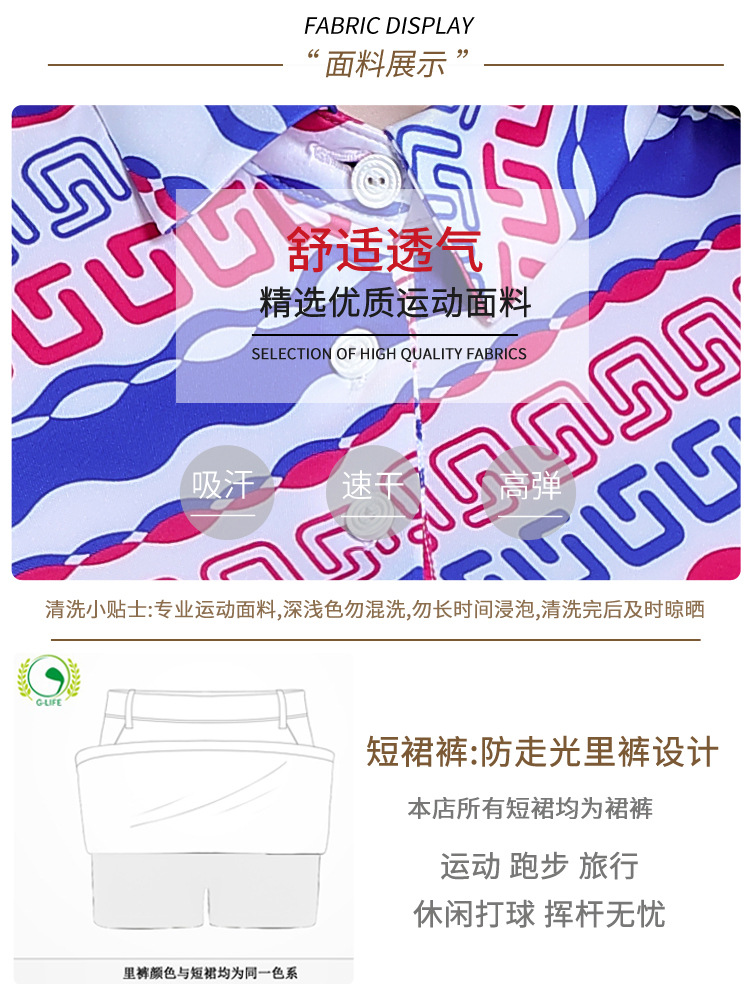 G-LIFE 골프 여자 하이 엔드 의류 여자 세트 여름 새로운 반팔 티셔츠 탑 퀵 드라이 스커트스토어 가기
