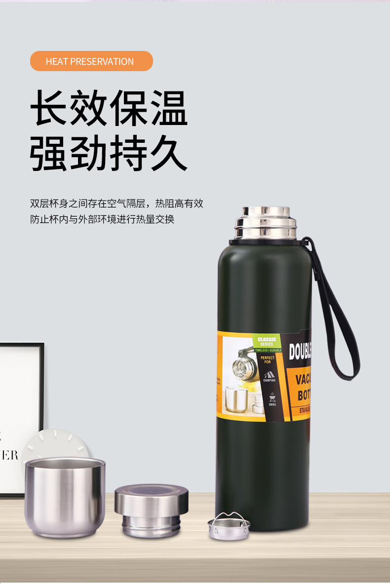 남성과 여성을위한 크로스 보더 야외 304 스테인레스 스틸 보온병 컵 차 물 분리 보온병 휴대용 대용량 여행 물 컵