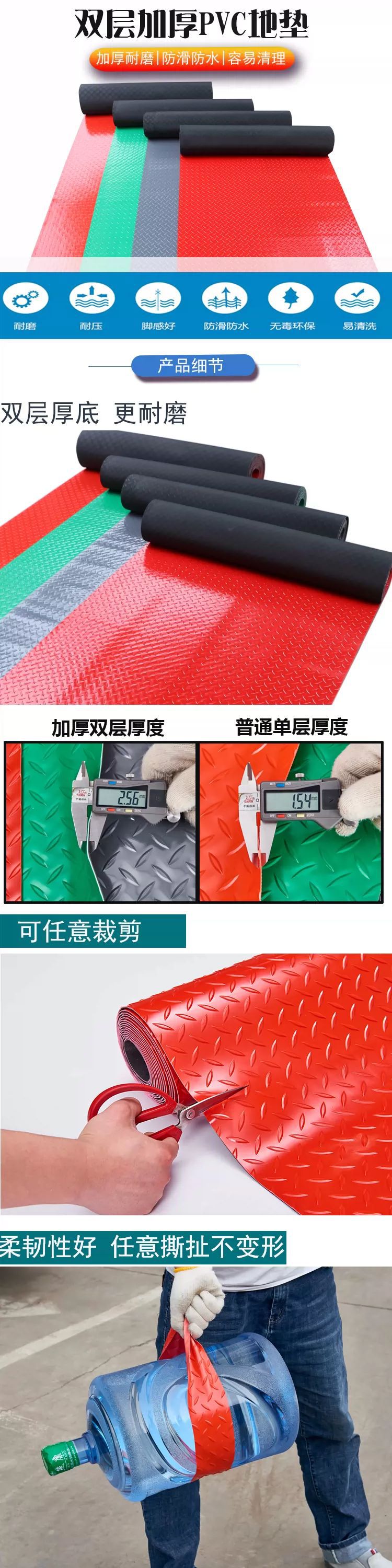 소가죽 미끄럼 방지 매트 PVC 욕실 두꺼운 도어 매트 주방 욕실 창고 고무 바닥 매트 방수 플라스틱 카펫
