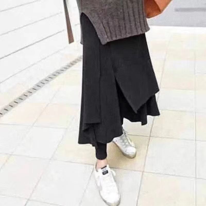 대외 무역 크로스-국경 불규칙한 퀼로트 여성의 새로운 가짜 투피스 플러스 사이즈 스커트 틈새 디자인 다층 원피스 퀼로트