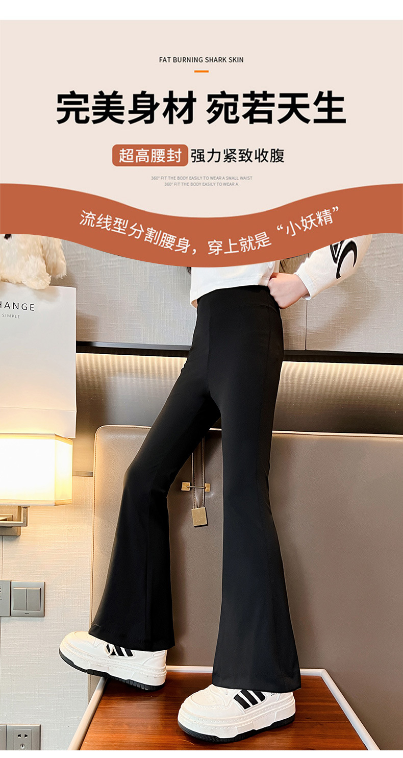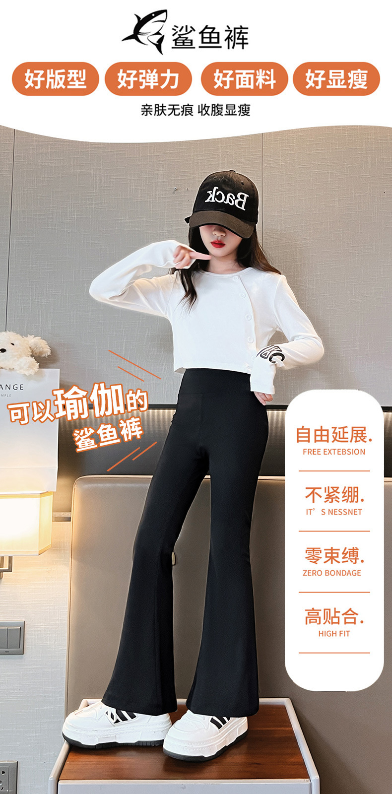 소녀의 상어 바지 봄과 가을 스타일리시 어린이 탄성 요가 뿔 넓은 다리 바지 외부 착용 봄과 가을베이스 긴 바지스토어 가기