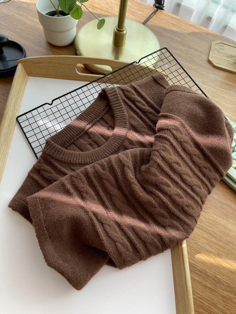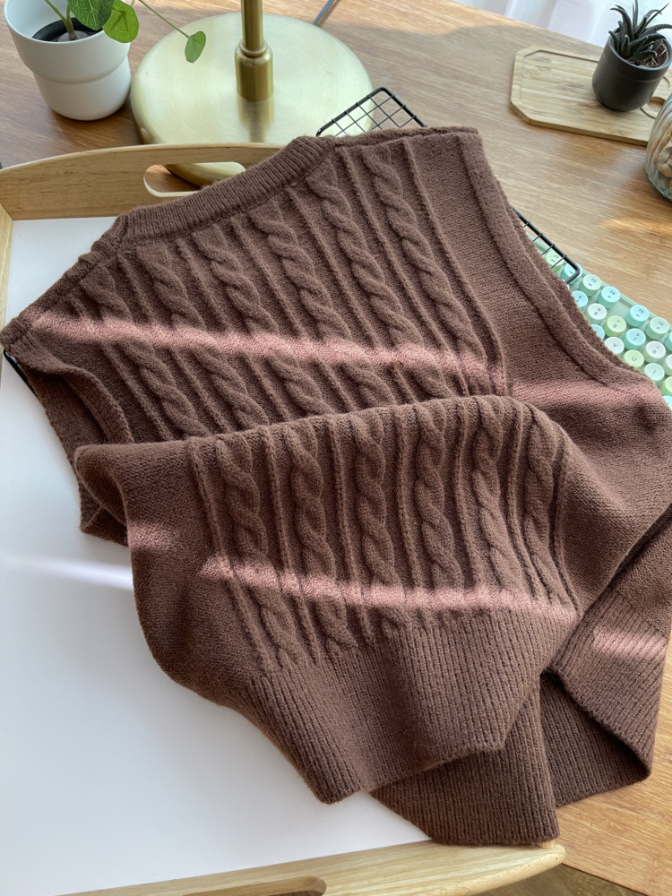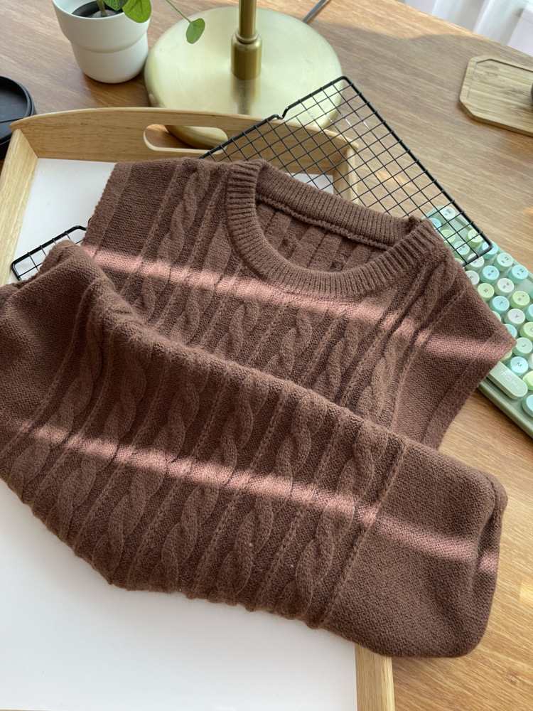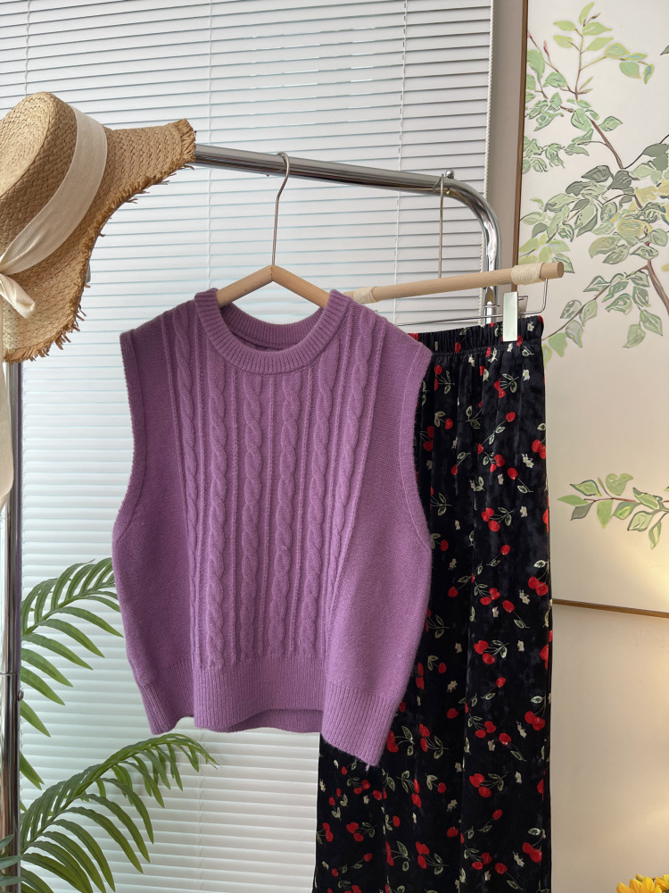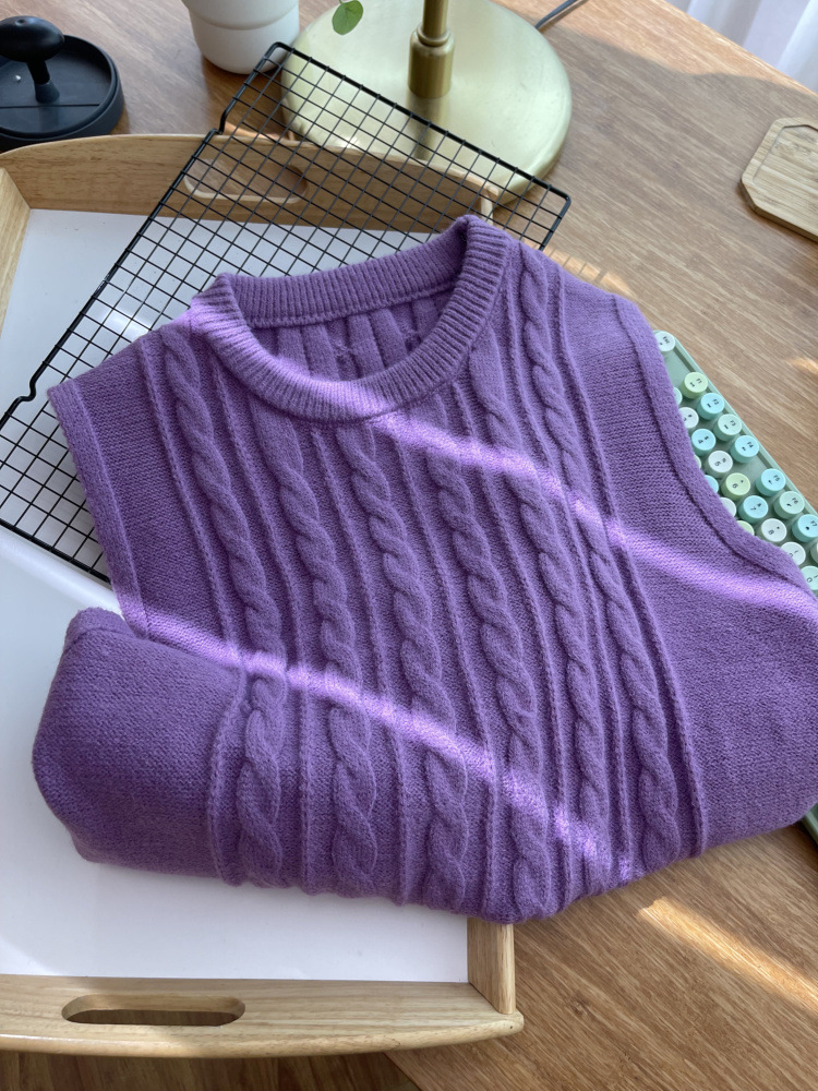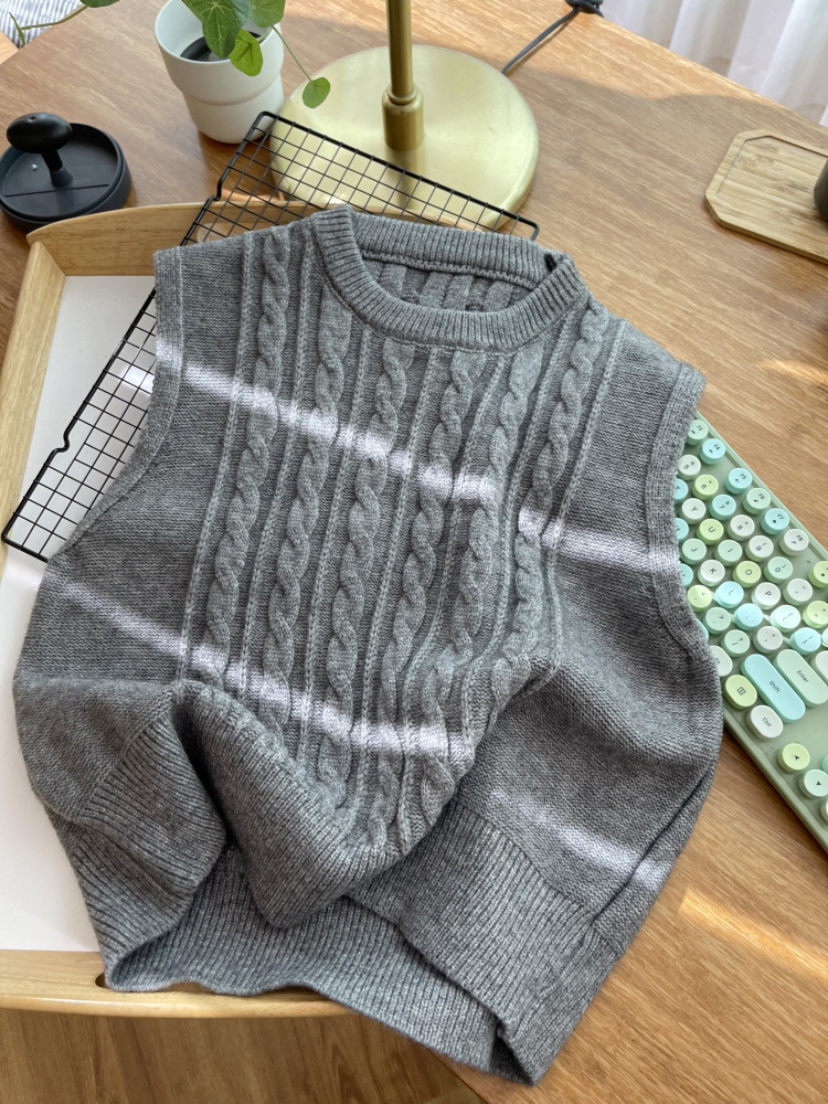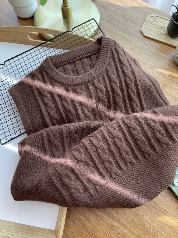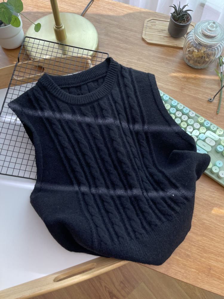 OOTD 가을 새로운 한국 스타일 레트로 게으른 스타일 단색 트위스트 라운드 넥 풀오버 민소매 니트 조끼 여성용