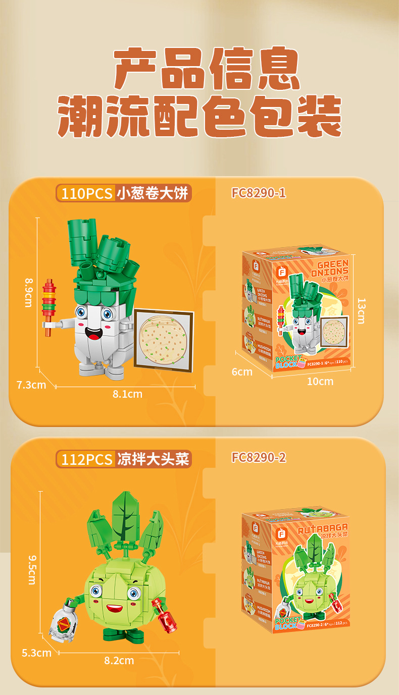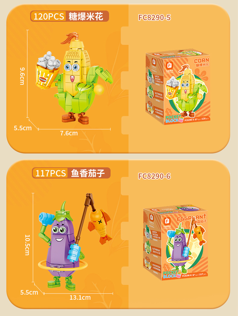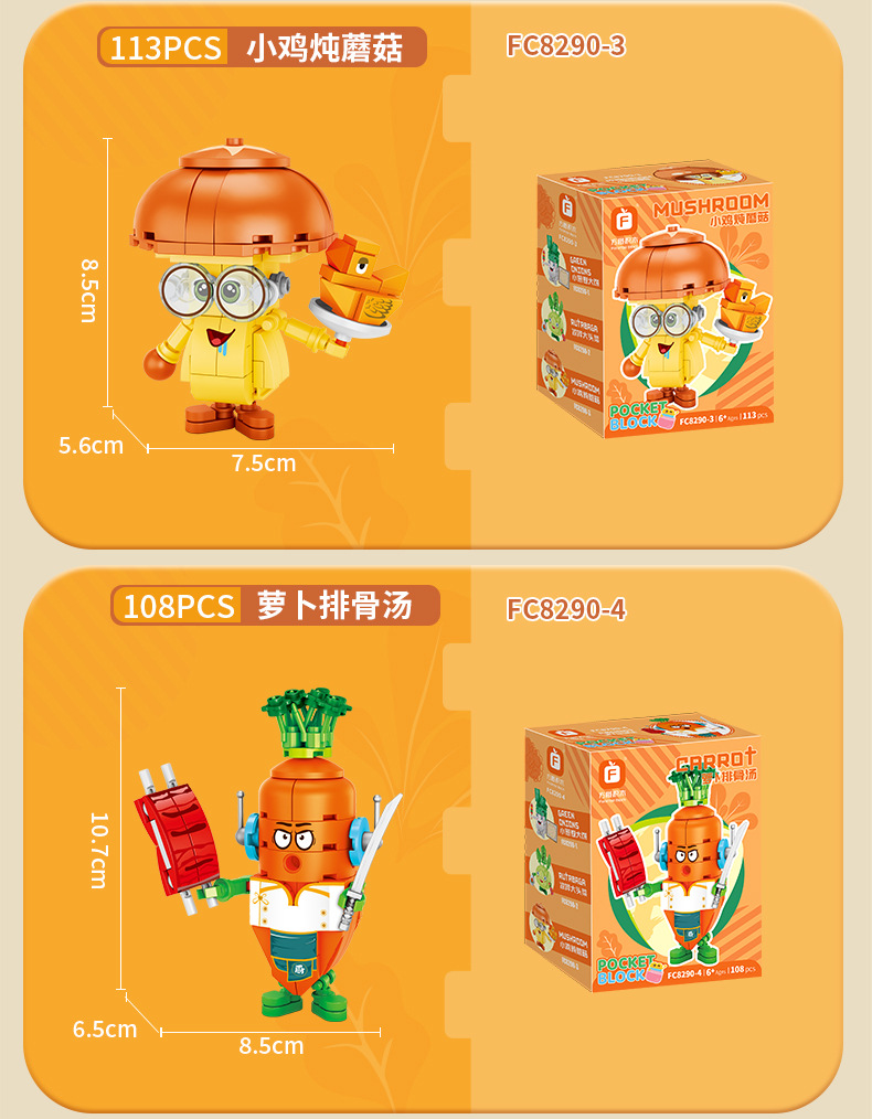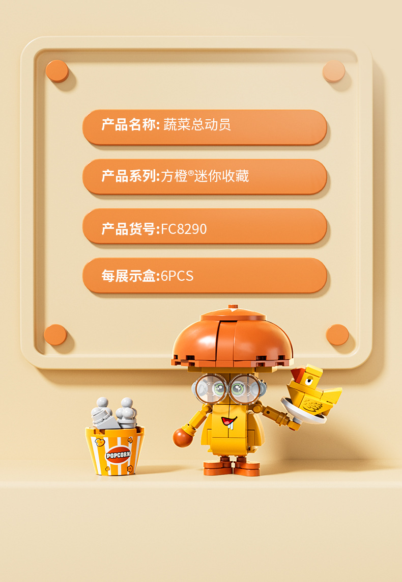 스퀘어 오렌지 8290 야채 빌딩 블록 파라다이스 쿠트라 비 버섯 팝콘 조립 모델 어린이 조립 장난감 선물