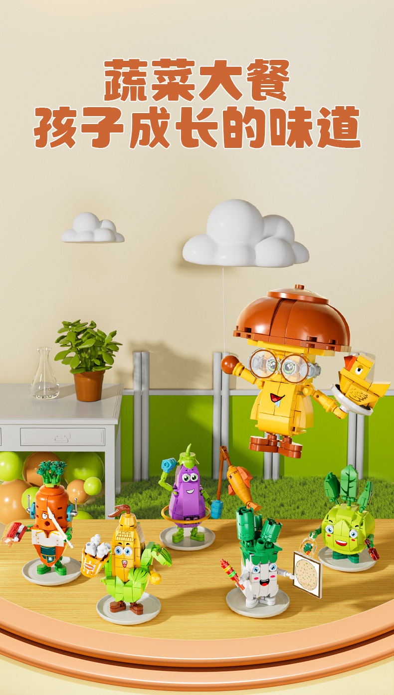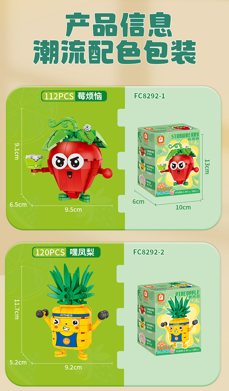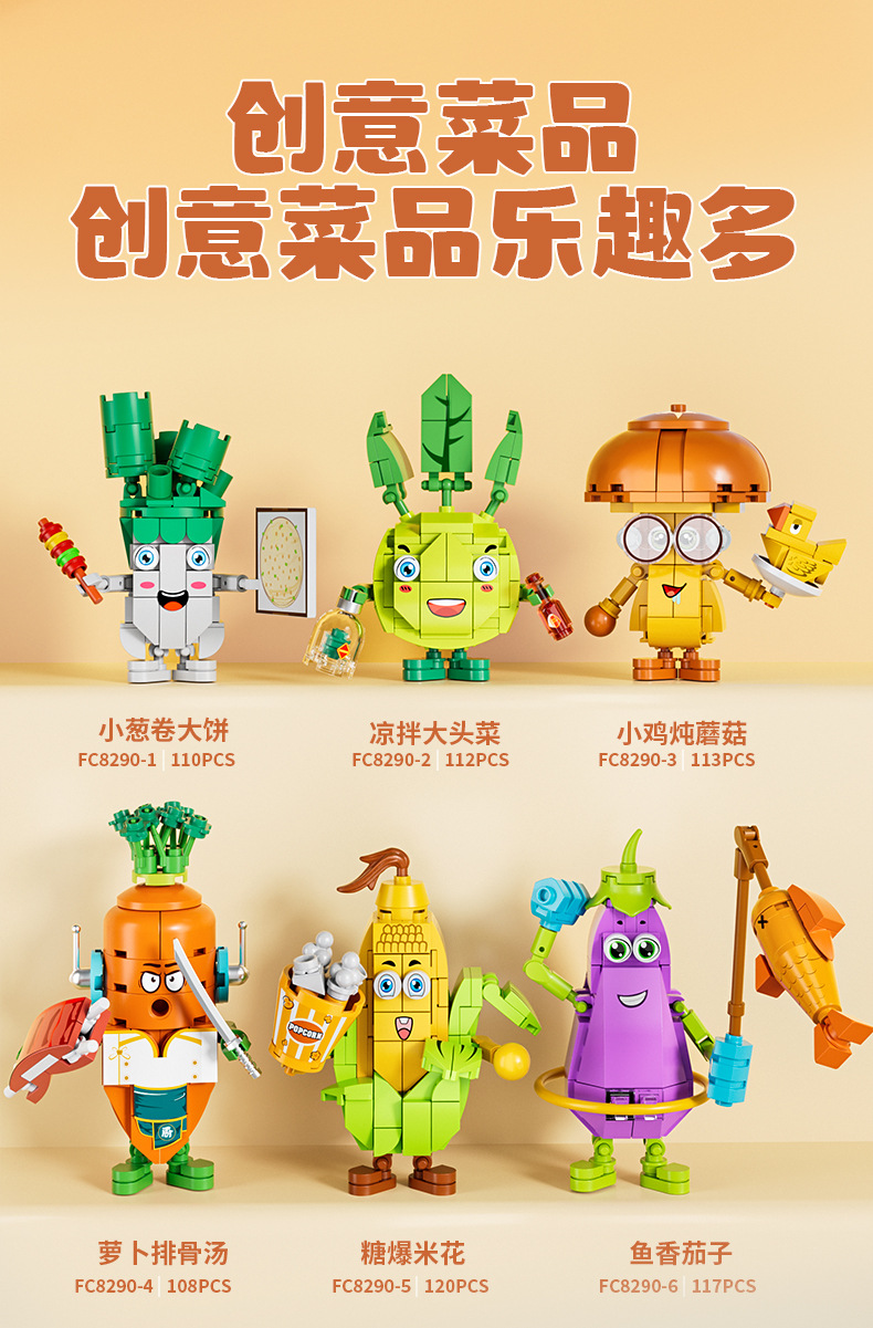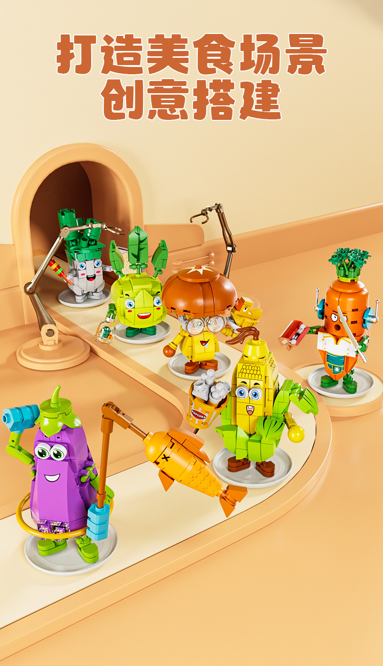 스퀘어 오렌지 8290 야채 빌딩 블록 파라다이스 쿠트라 비 버섯 팝콘 조립 모델 어린이 조립 장난감 선물