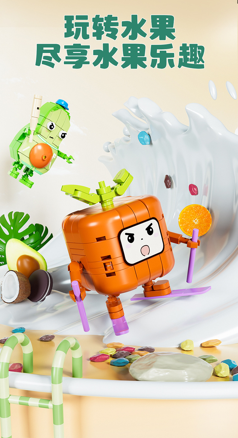 스퀘어 오렌지 8290 야채 빌딩 블록 파라다이스 쿠트라 비 버섯 팝콘 조립 모델 어린이 조립 장난감 선물스토어 가기