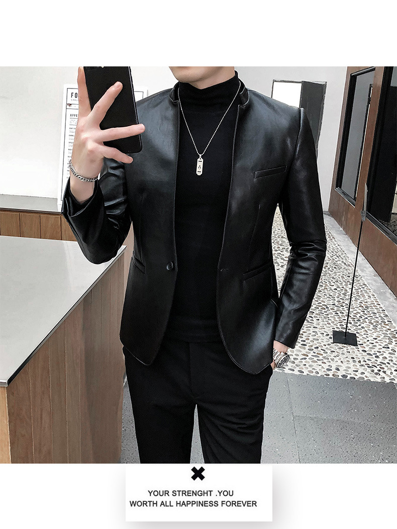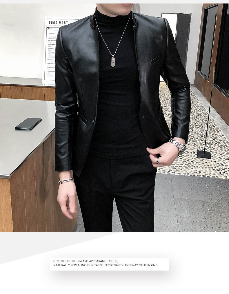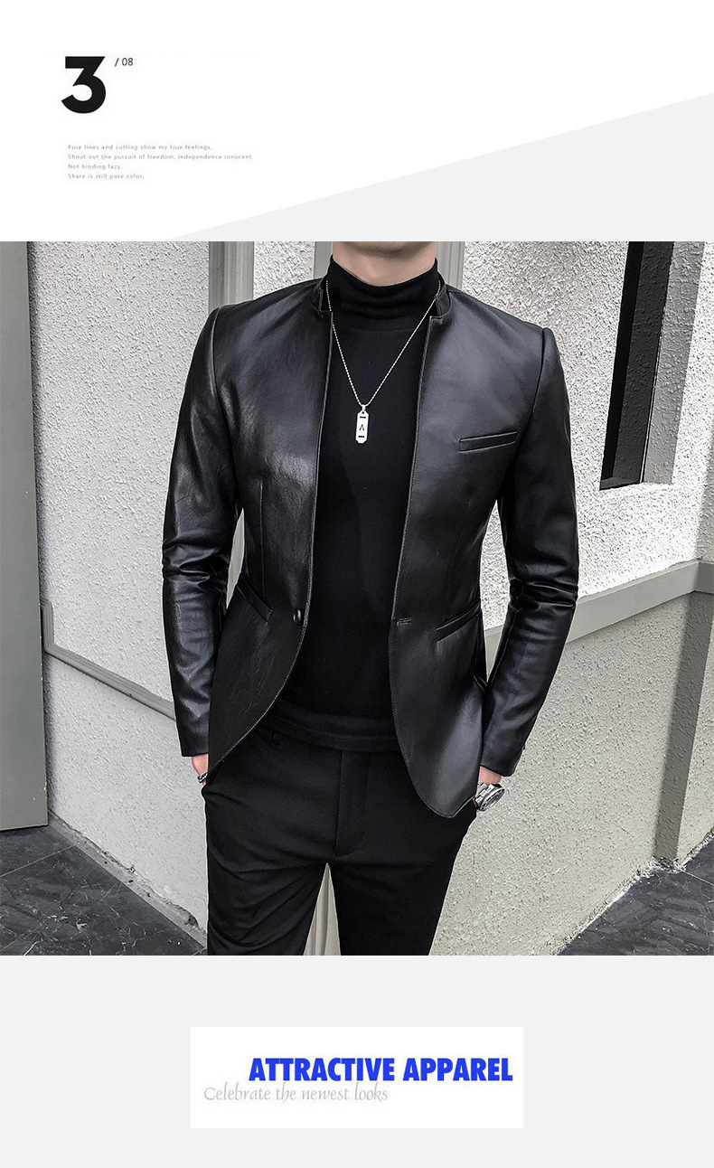 2025 봄 가을 남성 스탠드 칼라 가죽 재킷 스피릿 보이 슬림핏 트렌디 브랜드 가죽 코트 남성용스토어 가기